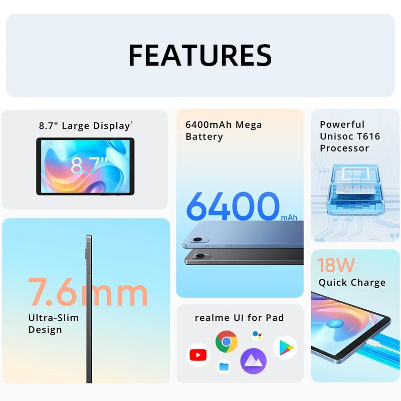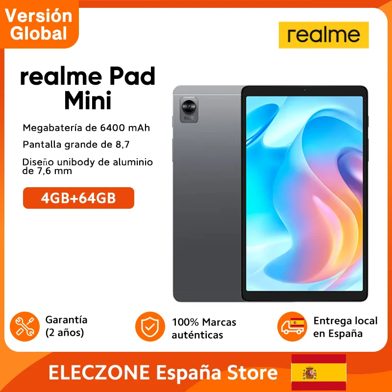 Comprar Realme-Mini tableta Pad versión Global, dispositivo con WiFi, batería de 6400mAh, gran pantalla de 8,7 pulgadas, 7,6mm, ultrafino, potente procesador Unisoc T616