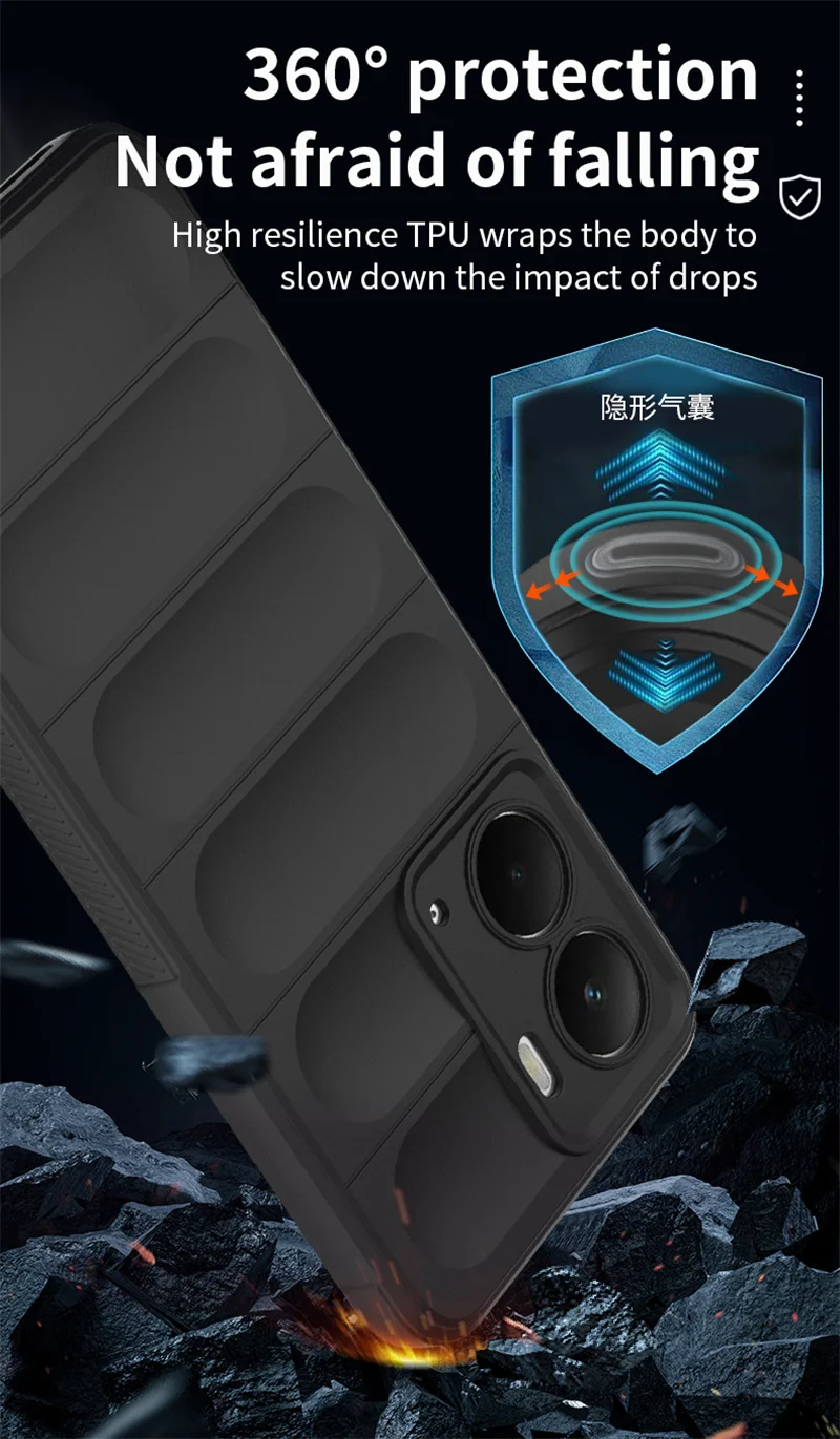 [Función]: Protección trasera A prueba de golpes + Resistente a rayones + Antideslizante