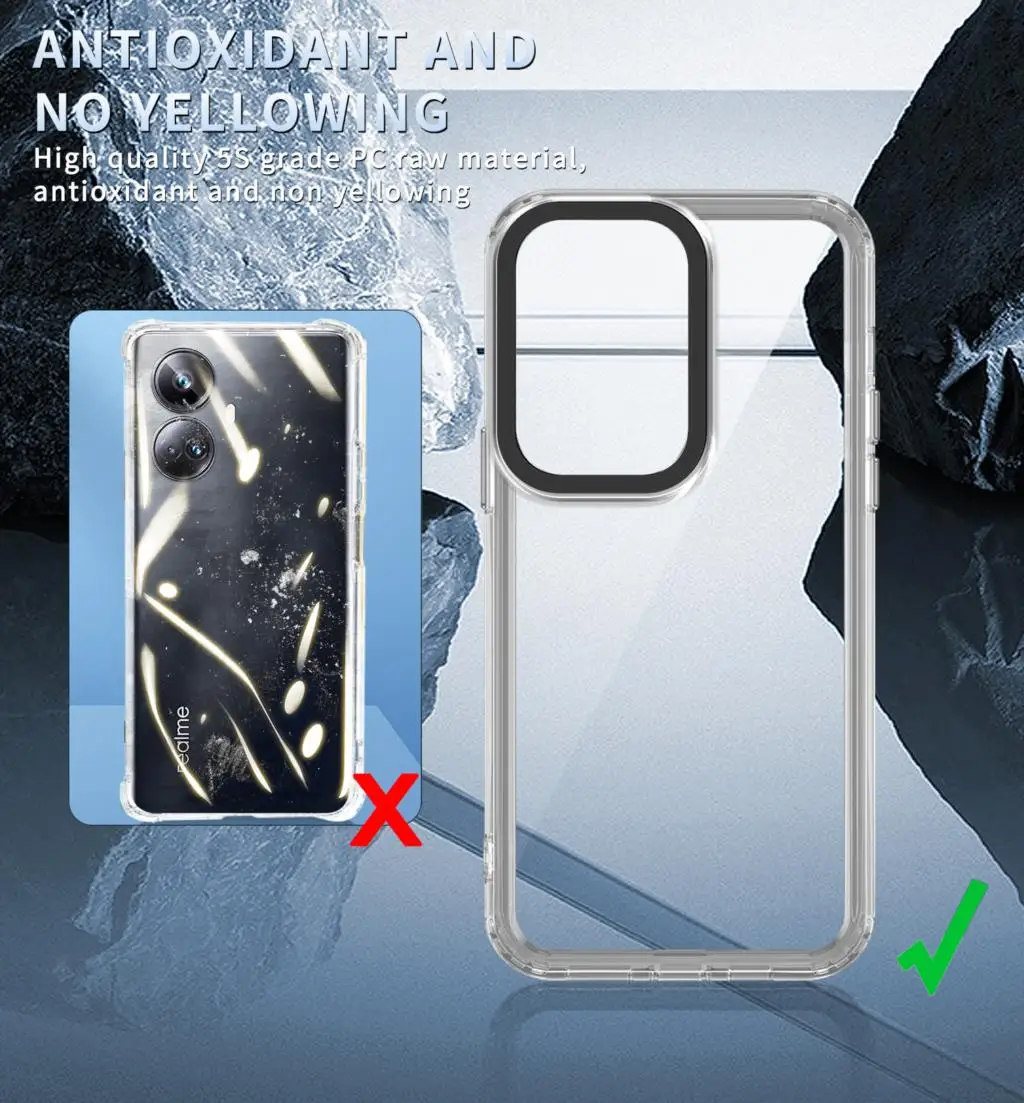 Comprar Realme10-funda rígida transparente de acrílico para Oppo Realme, 10 Pro Plus, 5g, 4g, Airbag transparente, cubierta trasera a prueba de golpes