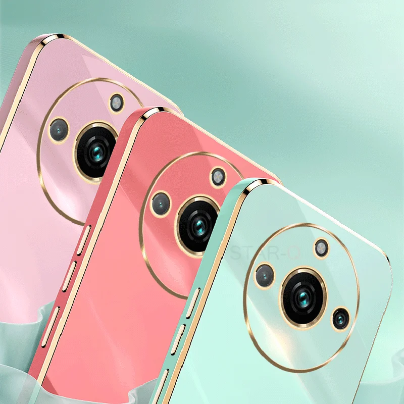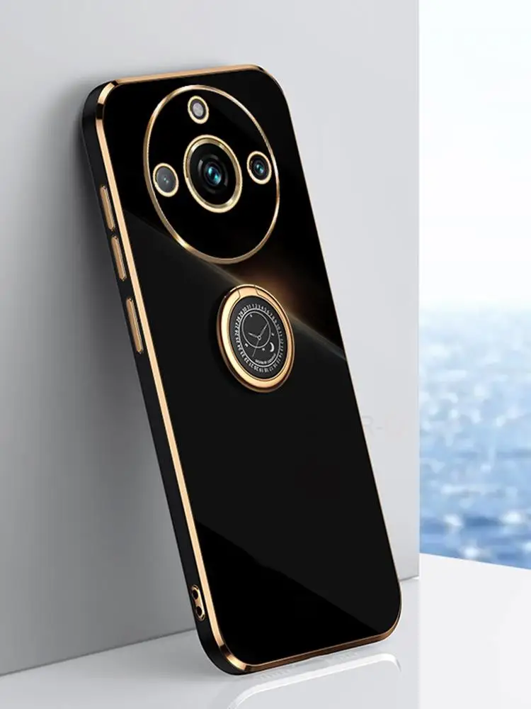 Realme11 4g 5g funda de teléfono con soporte de anillo chapado de lujo para Oppo Realme 11 Pro Plus funda protectora de silicona suave con soporte trasero 11pro