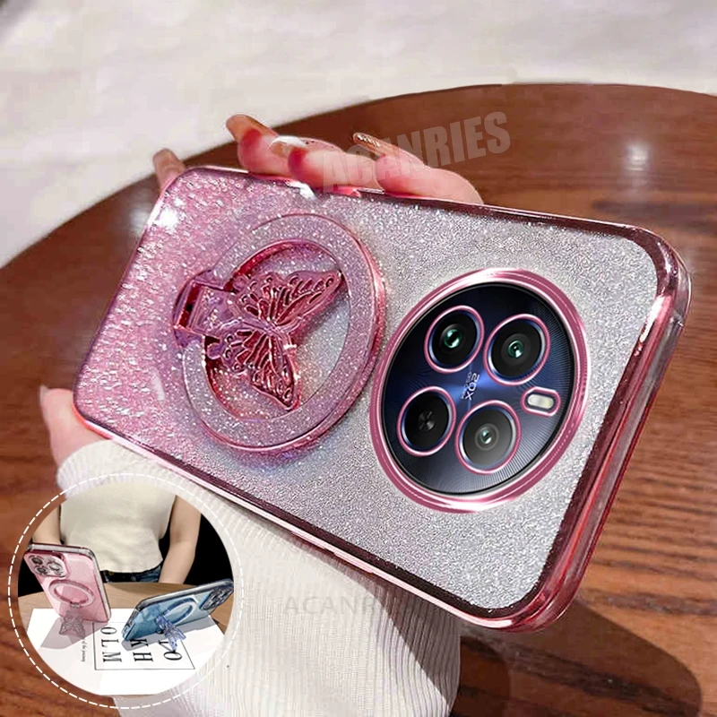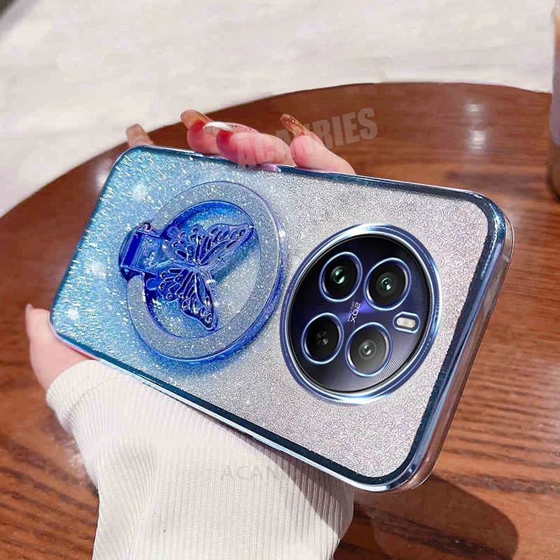Realme12pro funda chapada con soporte de mariposa para Oppo Realme 12 11 9 Pro Plus 8 C55 C53 Realme12 Lite 12pro funda con soporte de silicona