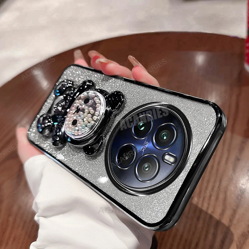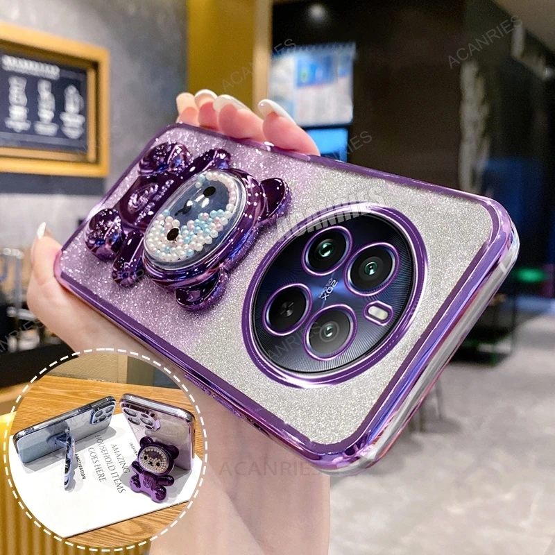 Realme12pro funda de silicona chapada con soporte de oso bonito para Oppo Realme 12 Pro Plus 11 9 8 4g 5g 12pro Realme12 Lite C55 funda con soporte