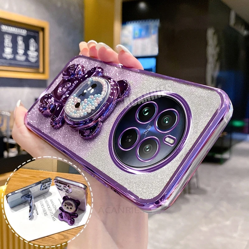 Realme12pro funda de silicona chapada con soporte de oso bonito para Oppo Realme 12 Pro Plus 11 9 8 4g 5g 12pro Realme12 Lite C55 funda con soporte