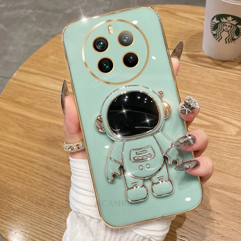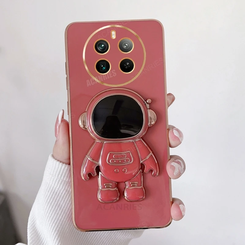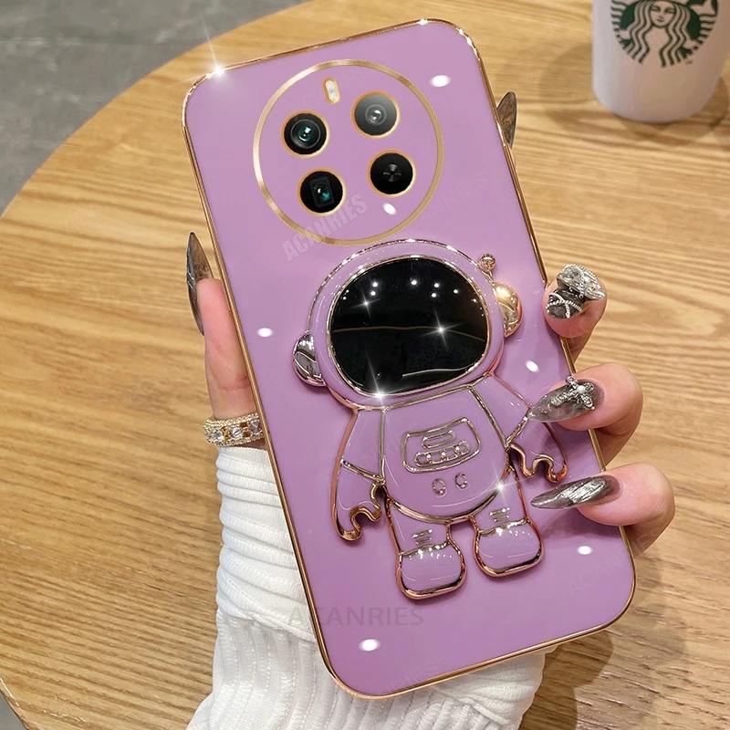 Realme12pro soporte de astronauta funda chapada de lujo para Oppo Realme 12 Pro Plus Lite 11 9 8 4g 5g C55 Gt Neo 5 funda de silicona