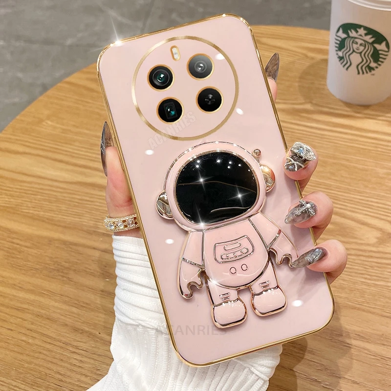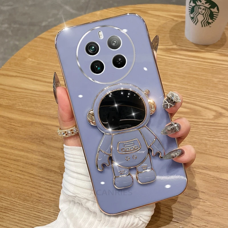 Realme12pro soporte de astronauta funda chapada de lujo para Oppo Realme 12 Pro Plus Lite 11 9 8 4g 5g C55 Gt Neo 5 funda de silicona