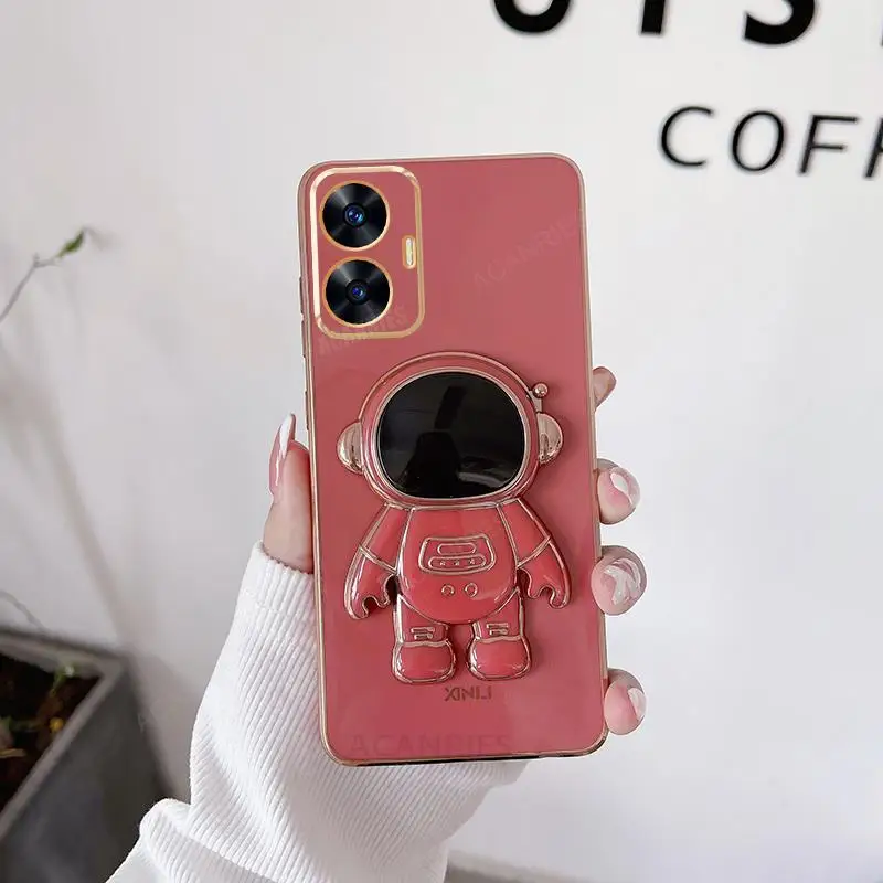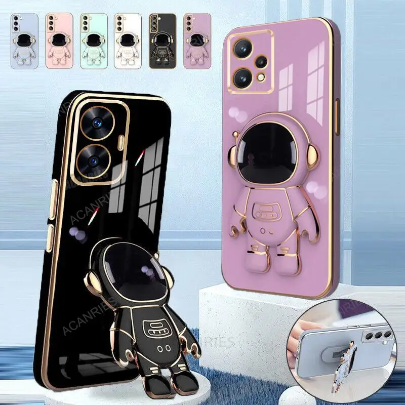 Comprar Realmec55-funda con soporte de astronauta para Oppo, cubierta de silicona chapada de lujo para Realme, C55, C33, C35, C53, Gt Neo 5, Gt5, C21, C30, C20