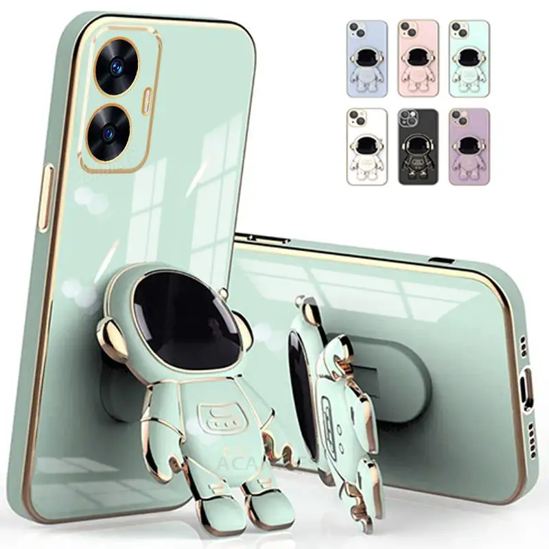 Comprar Realmec55-funda con soporte de astronauta para Oppo, cubierta de silicona chapada de lujo para Realme, C55, C33, C35, C53, Gt Neo 5, Gt5, C21, C30, C20