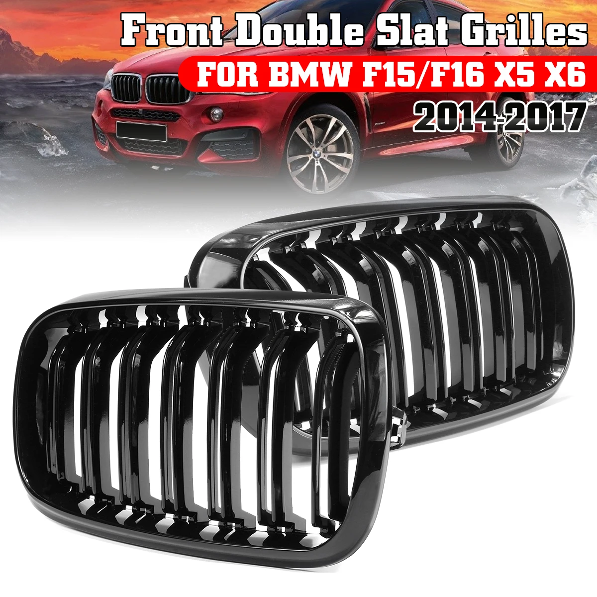 Rejilla delantera de doble listón negra brillante para BMW F15/F16 X5 X6 14-17
