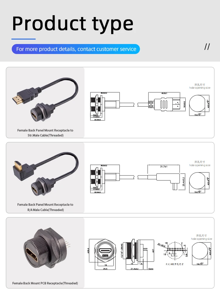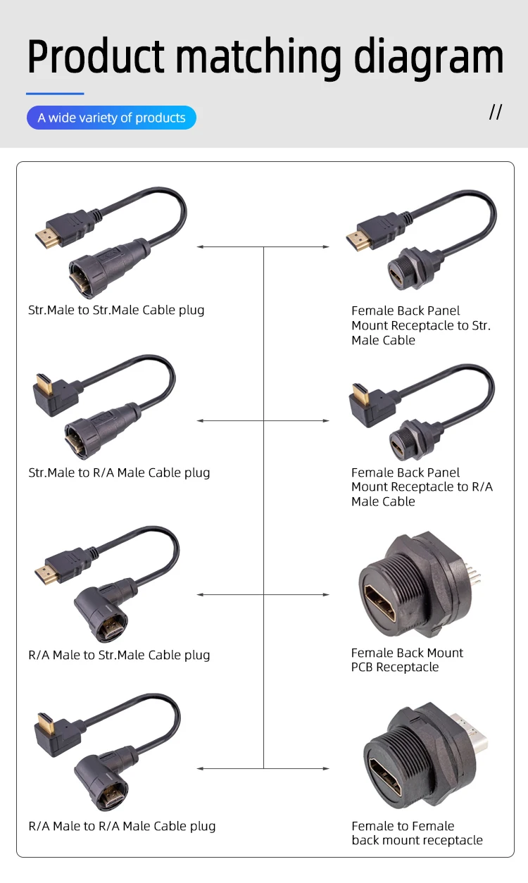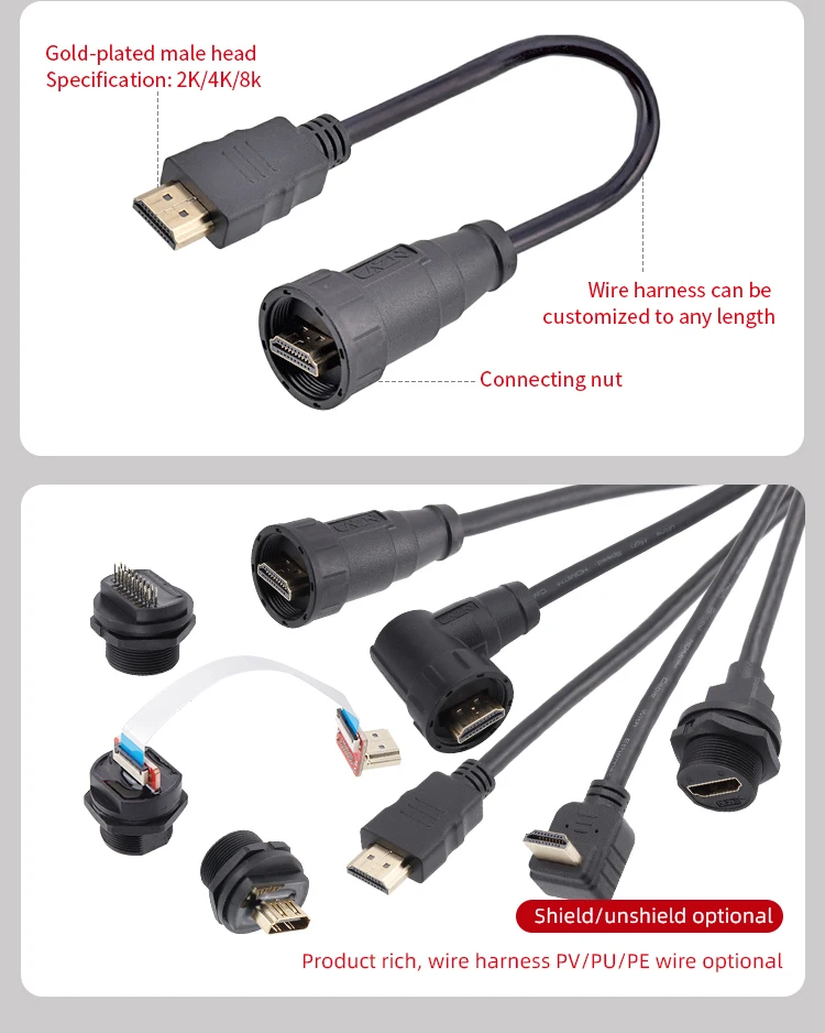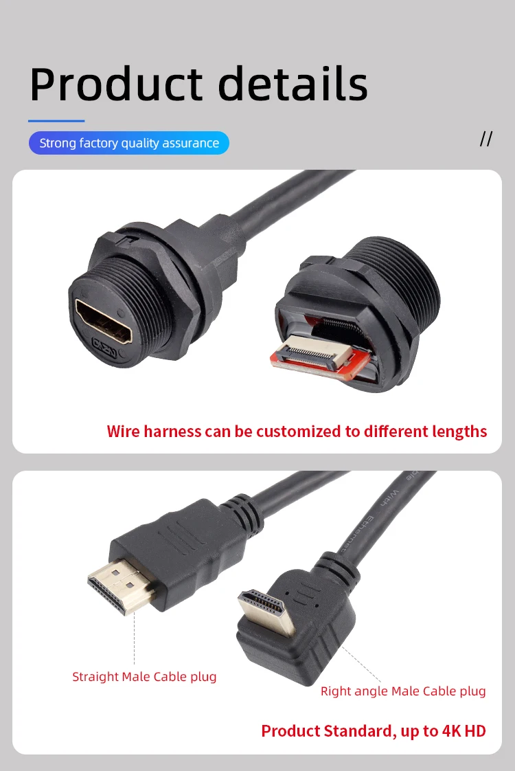 Estándar del producto: conexión de bloqueo roscado, estructura rica, hasta 4K HD
