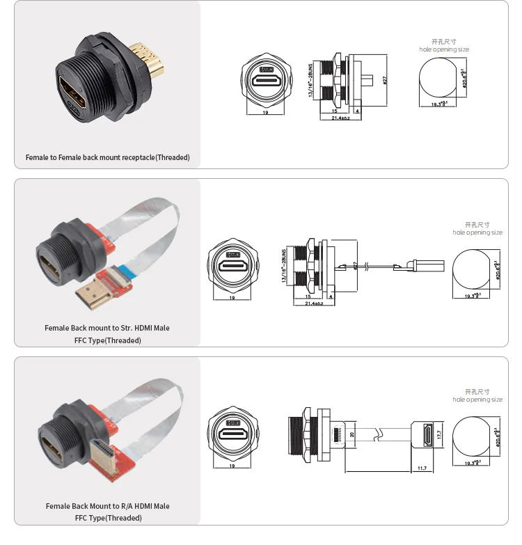 Título: Receptáculo hembra de interfaz AV tipo roscado con cable FPC de 0,1 M 0,2 M.