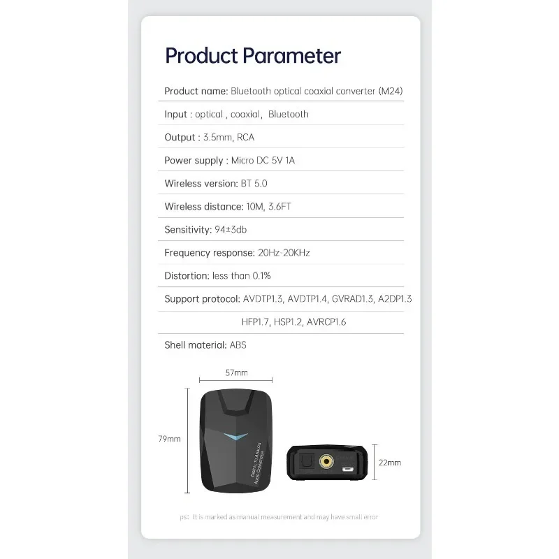 Nombre del producto: receptor Compatible con Bluetooth y convertidor de audio DAC