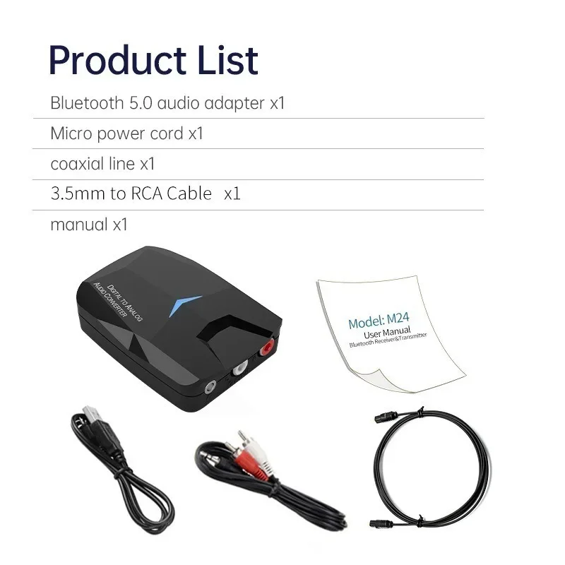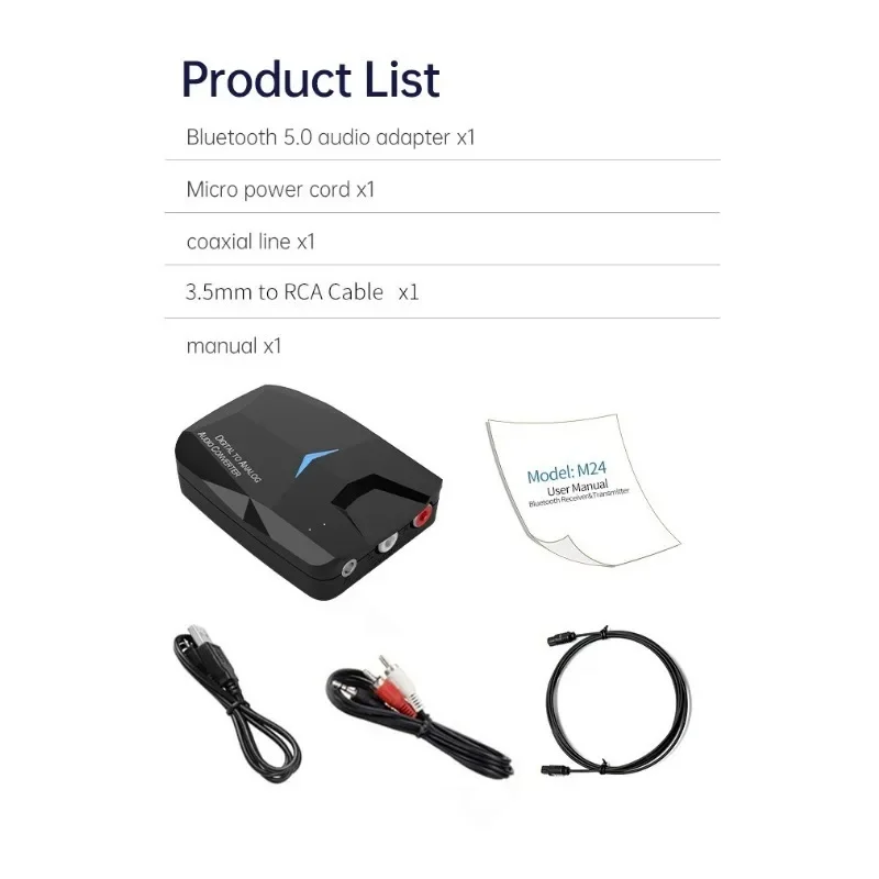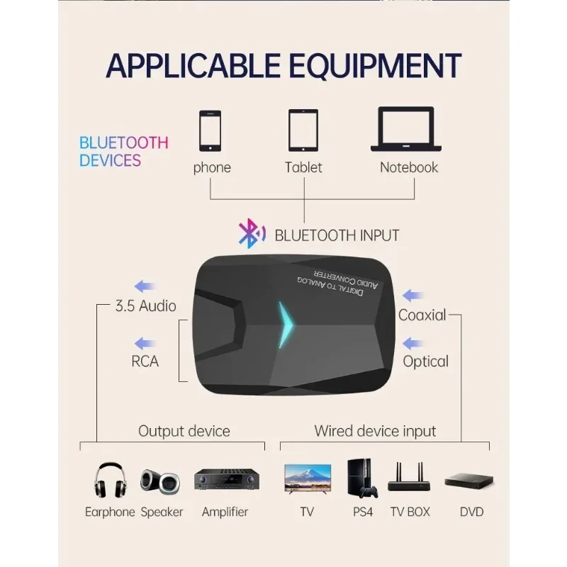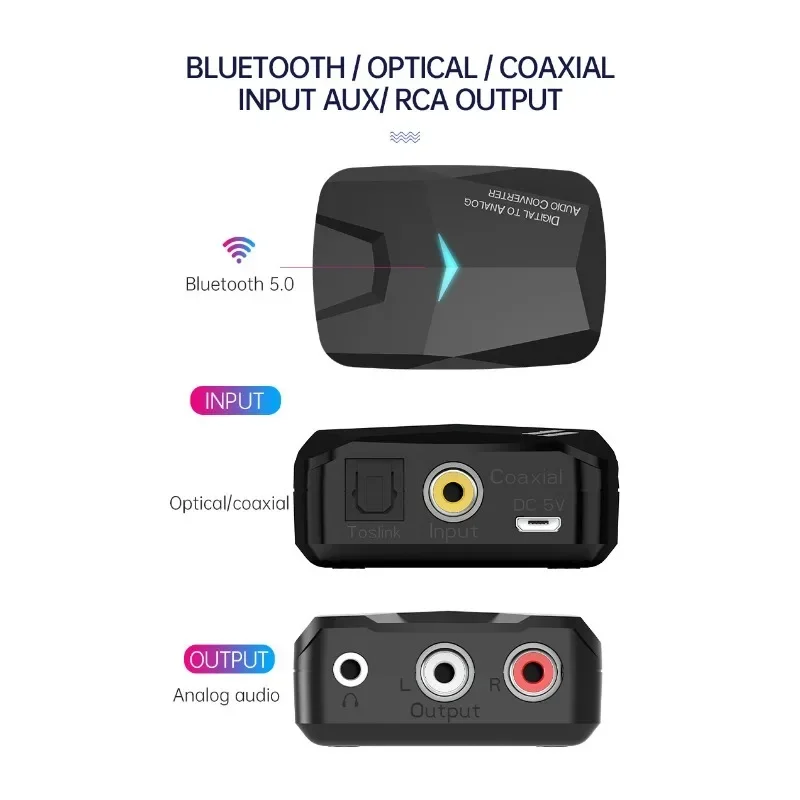 Receptor de audio Compatible con Bluetooth/convertidor de audio digital a analógico/convertidor de audio Coaxial óptico