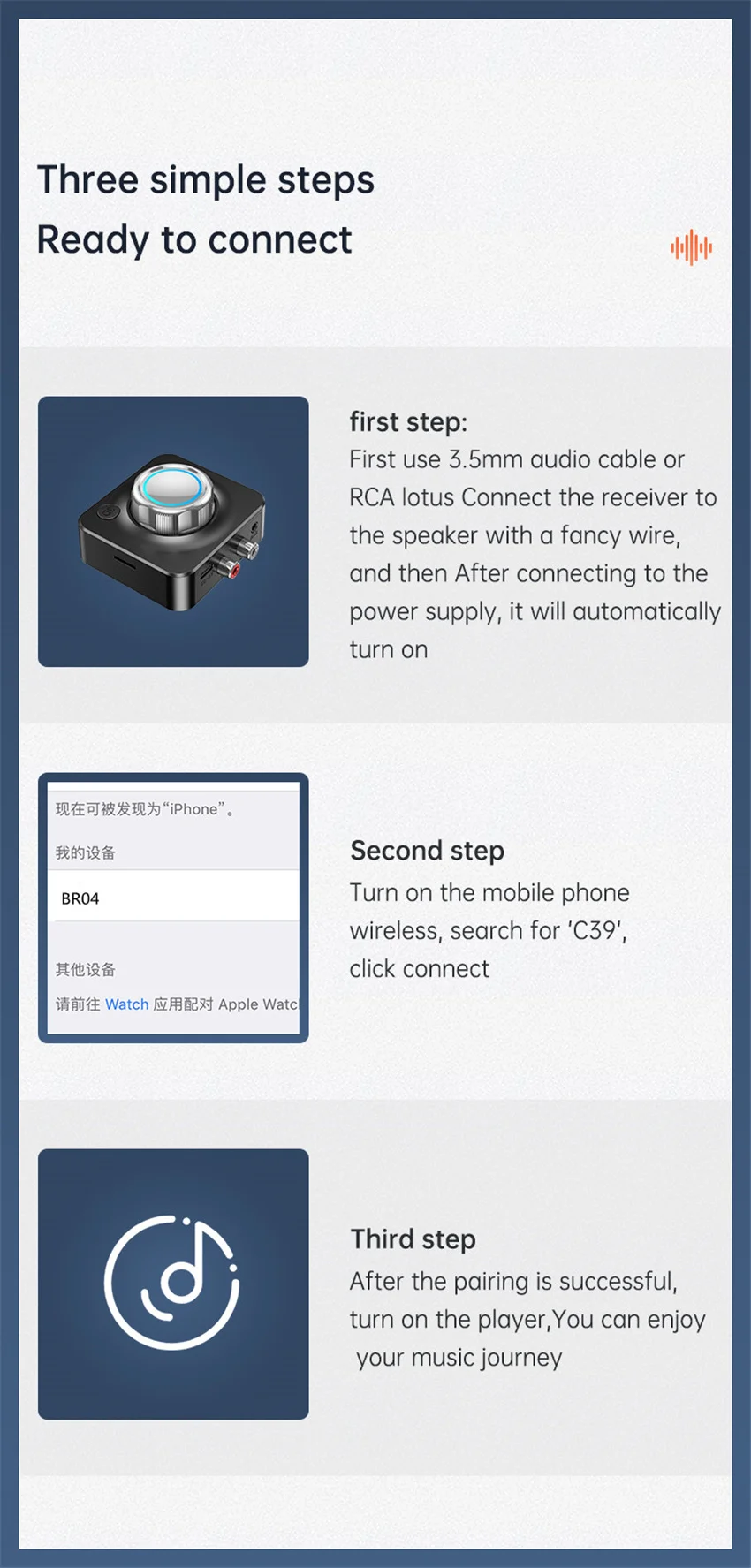 8.Conexión automática: este receptor Bluetooth se conectará automáticamente al último dispositivo Bluetooth emparejado cuando lo encienda la próxima vez.
