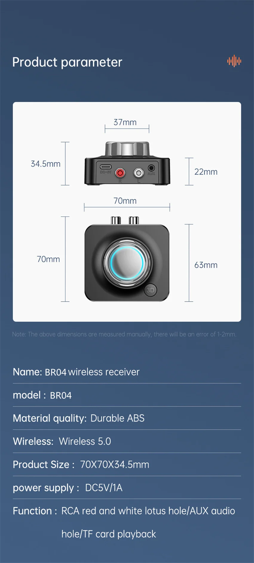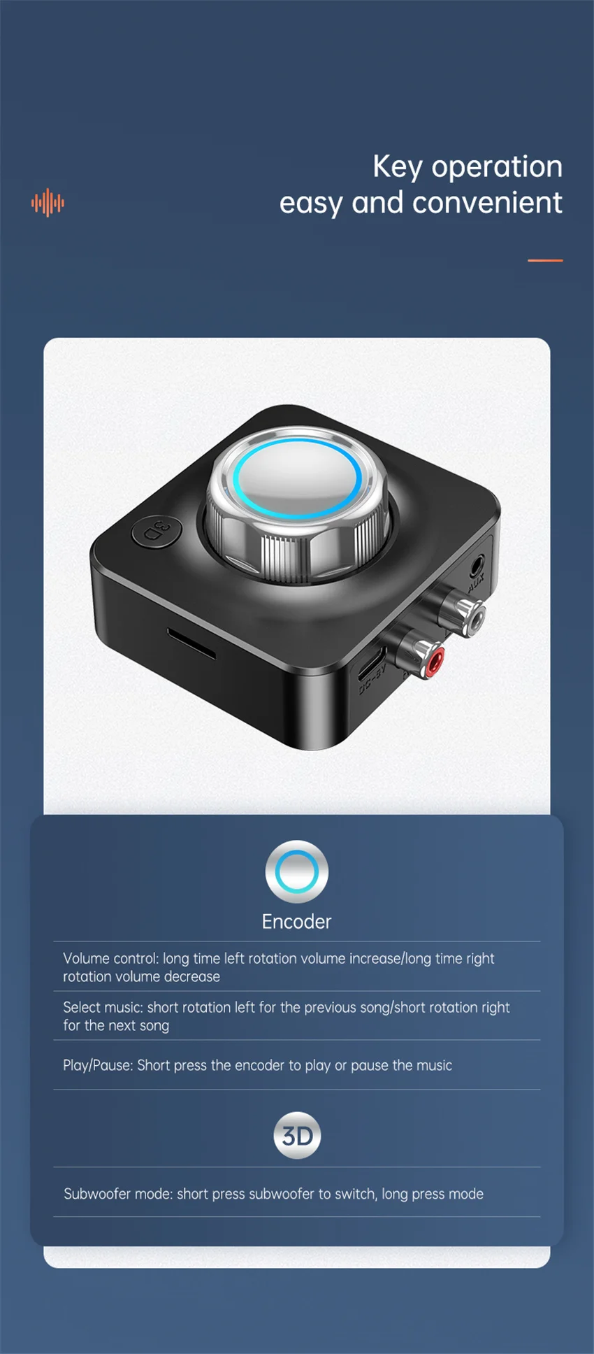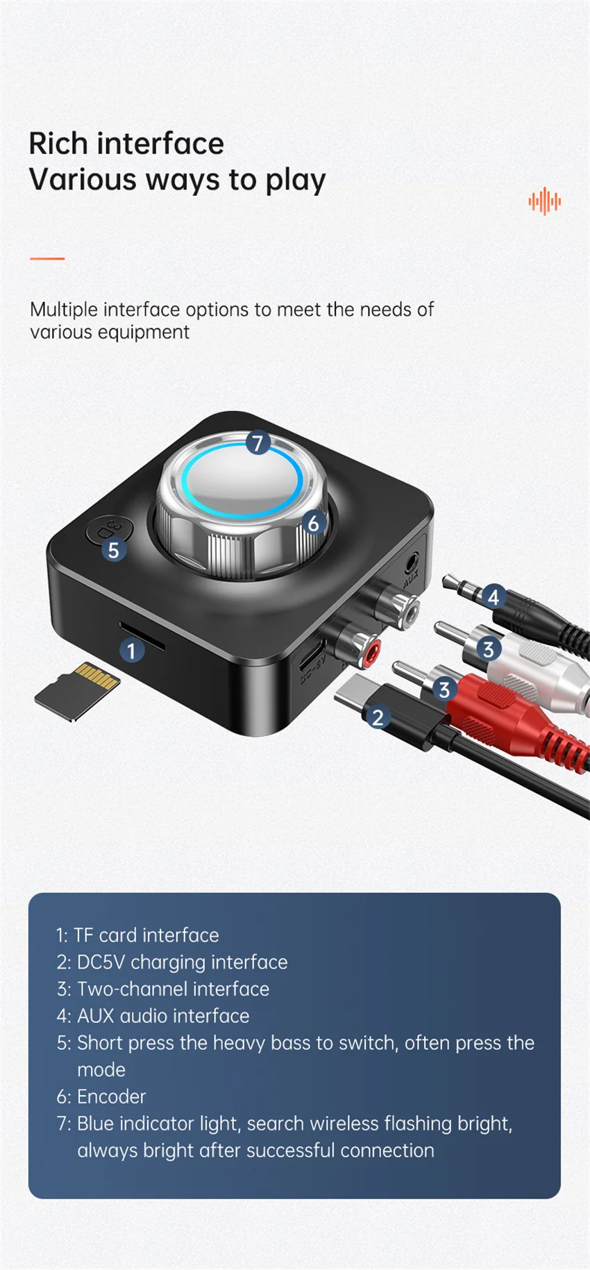 Comprar Receptor de Audio Bluetooth 5,0, adaptador inalámbrico de música estéreo 3D, tarjeta TF R/L RCA, conector auxiliar de 3,5mm para kit de coche, altavoz/auriculares con cable