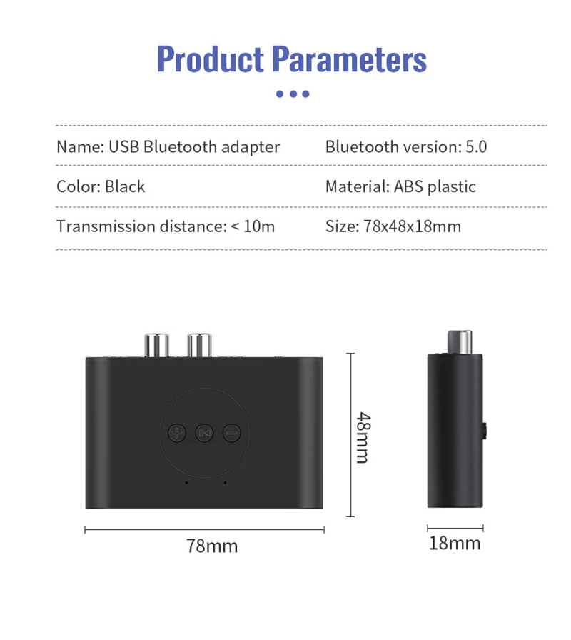 7. Conexión súper estable: Nuestro Adaptador de audio Bluetooth está equipado con un chip Bluetooth 5,0 para un emparejamiento constante, transmisión rápida y un amplio rango de señal (33 pies). Con el puerto AUX de 3,5mm y 2 puertos RCA, se puede conectar a sistemas de audio de coche sin Bluetooth, estéreo doméstico, auriculares/altavoces con cable, amplificador/cine en casa, etc. ¡Entonces puede disfrutar de transmisión de música inalámbrica de alta fidelidad! Nota: es solo un receptor Bluetooth vaolro, no un transmisor. Por lo tanto, no podría usarlo para su televisor, teclado o ratón.