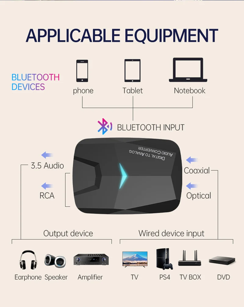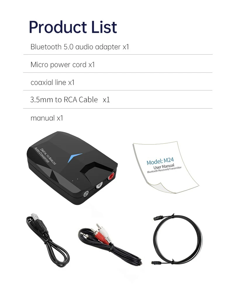 -Receptor de Audio Bluetooth/convertidor de Audio Digital a analógico/convertidor de Audio Coaxial óptico