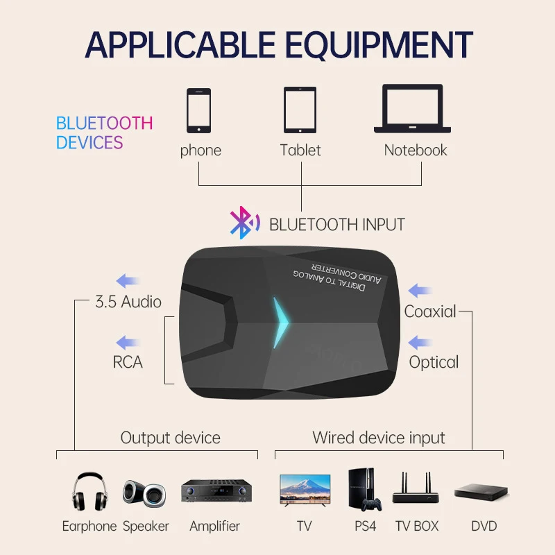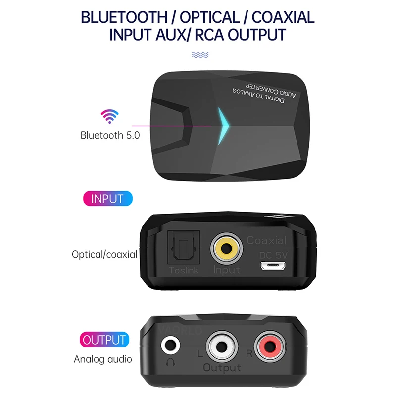 -Receptor de Audio Bluetooth/convertidor de Audio Digital a analógico/convertidor de Audio Coaxial óptico