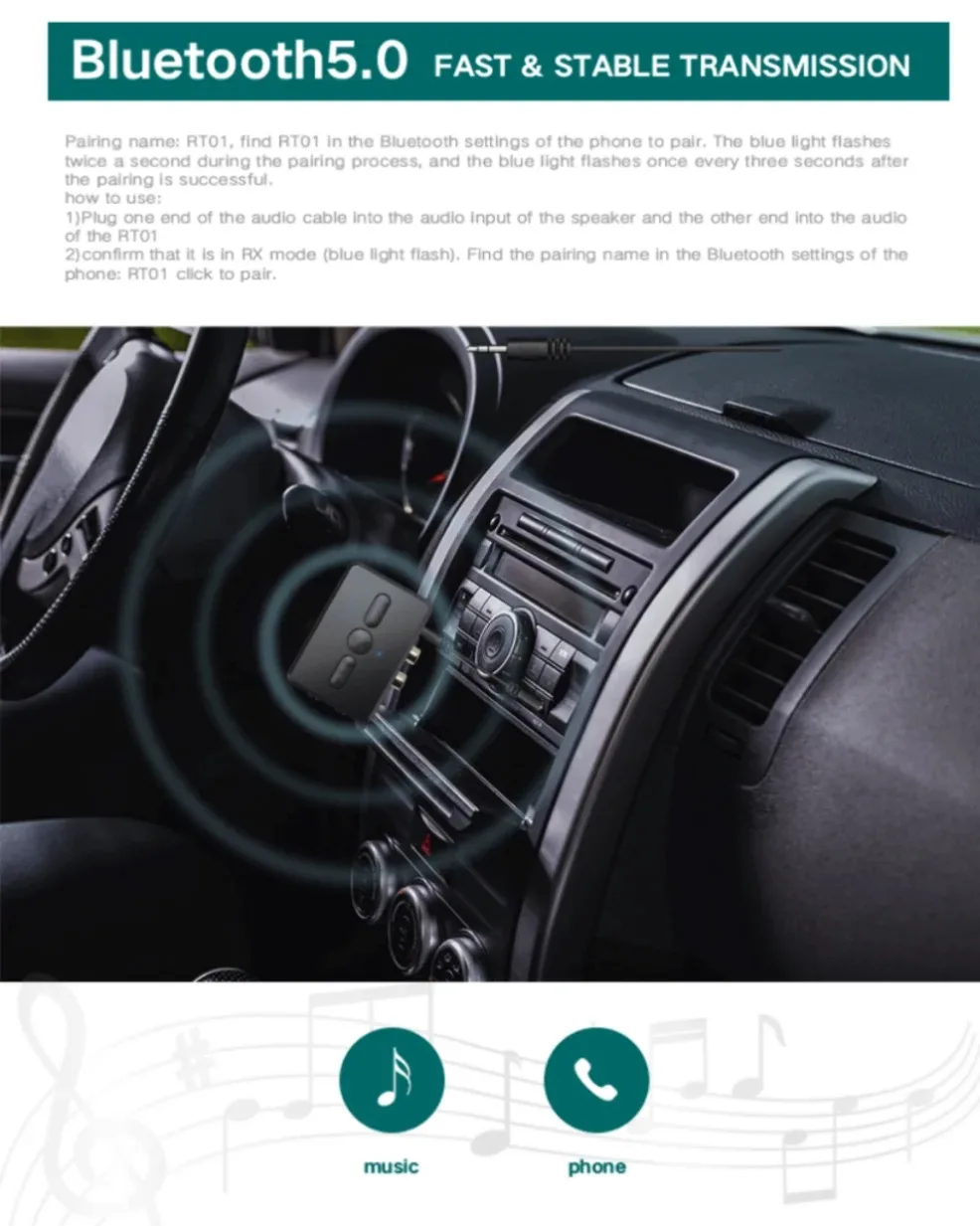 El modo de recepción se puede utilizar en situaciones como el hogar, el coche, etc., para que los altavoces sin función Bluetooth puedan tener función Bluetooth y realizar una conexión inalámbrica con teléfonos móviles, tabletas y otros dispositivos, y adiós a las restricciones cableadas.