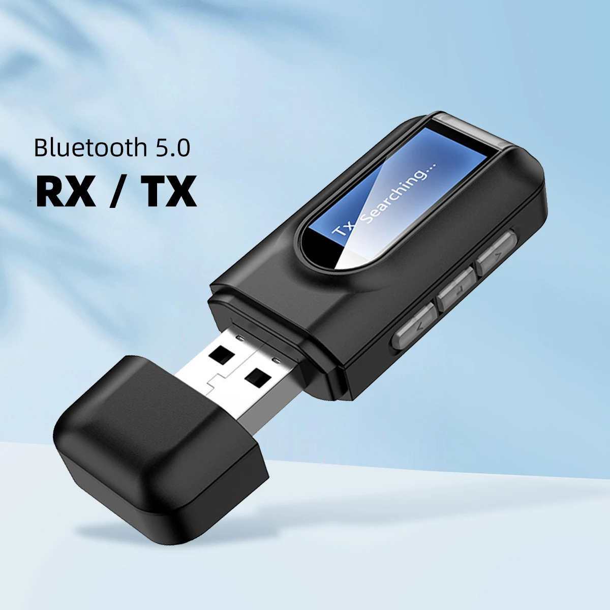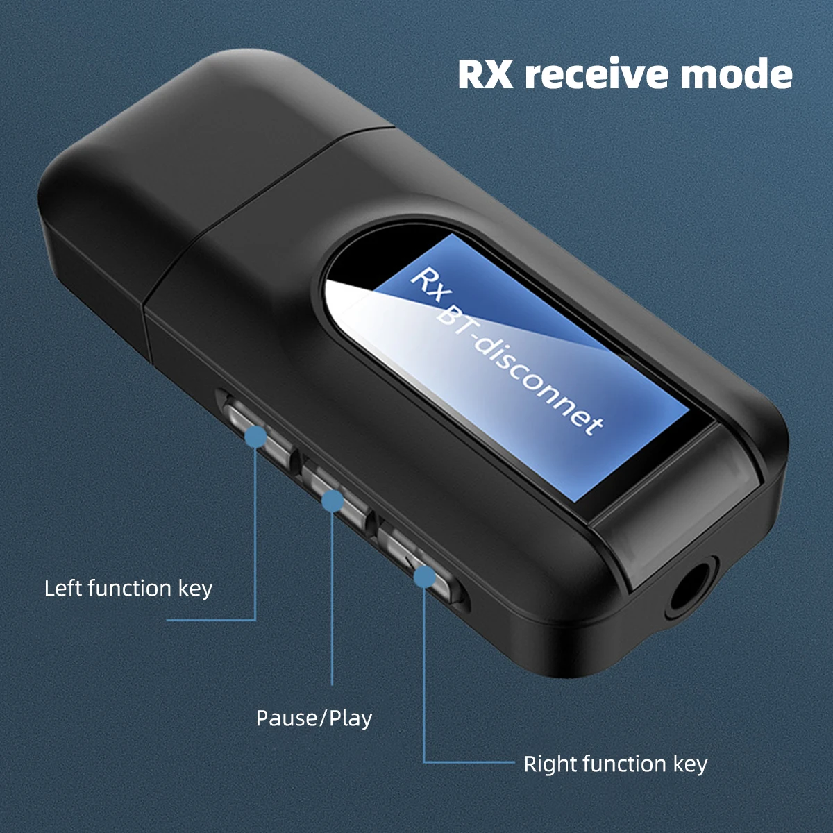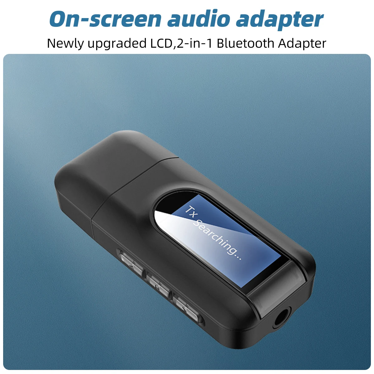 Comprar Receptor de Audio inalámbrico con Bluetooth 5,0, adaptador transmisor de pantalla LCD, 3,5mm, AUX, USB, Dongle para TV, PC, altavoz, proyector, 2 en 1