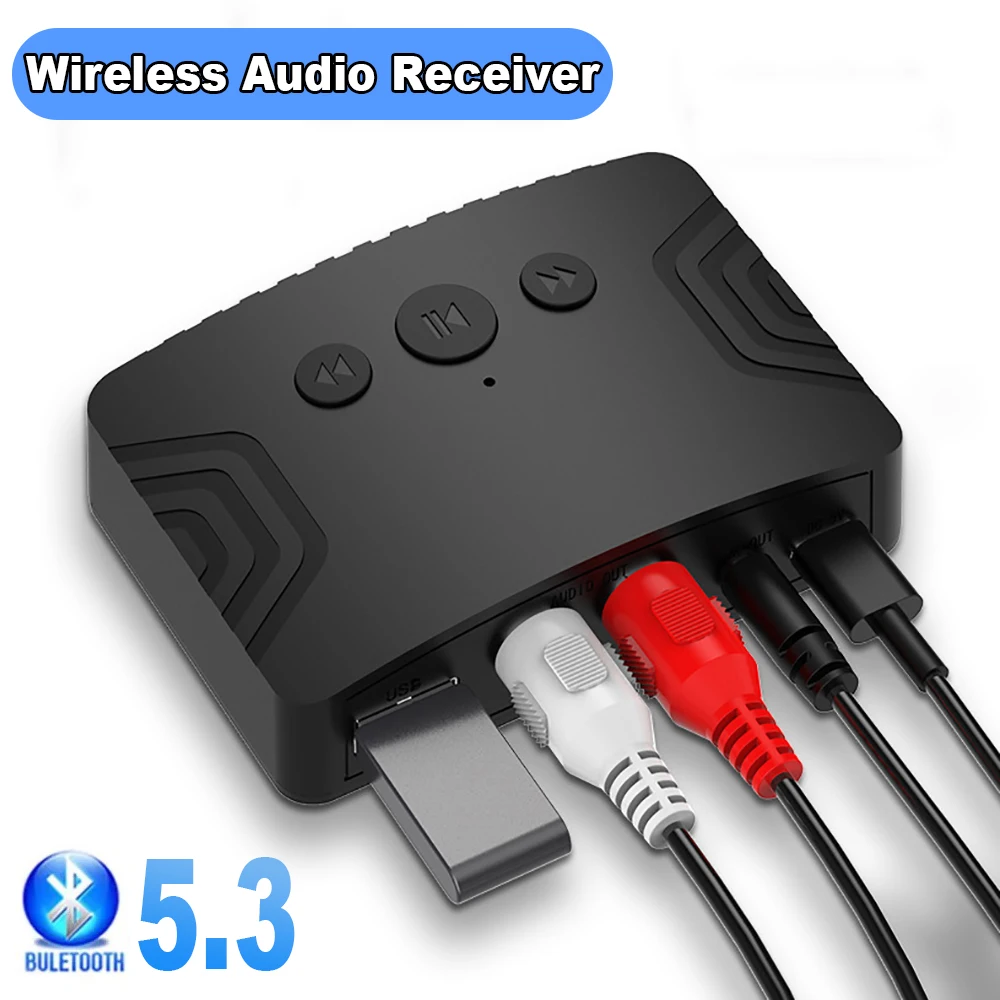 Comprar Receptor de Audio inalámbrico Bluetooth 5,3 para coche, NFC, estéreo, AUX, conector RCA de 3,5mm, adaptador de Audio óptico Bluetooth, reproductor de música de disco U