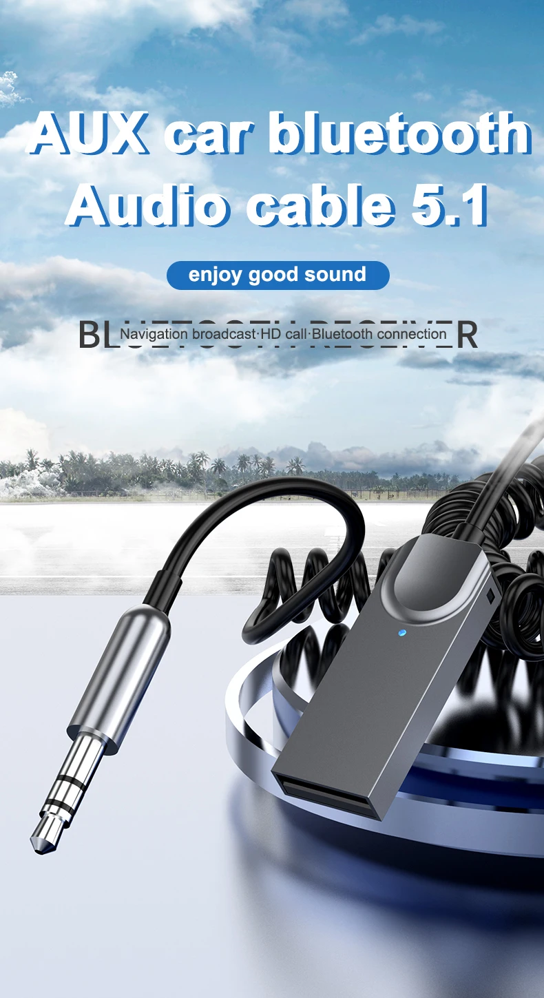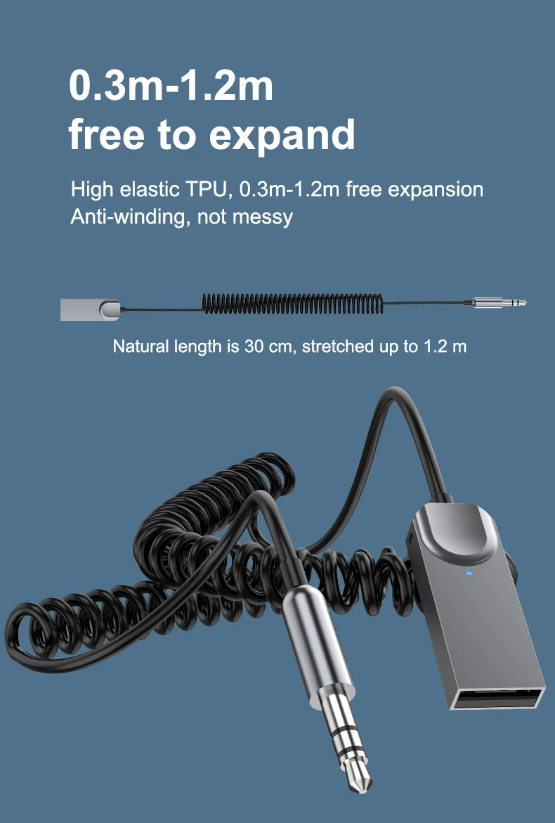 Comprar Receptor de Audio inalámbrico para música de coche, Cable de resorte USB Jack AUX de 3,5mm, adaptador Bluetooth 120 de 30-5,1 cm con micrófono HD, kit de manos libres