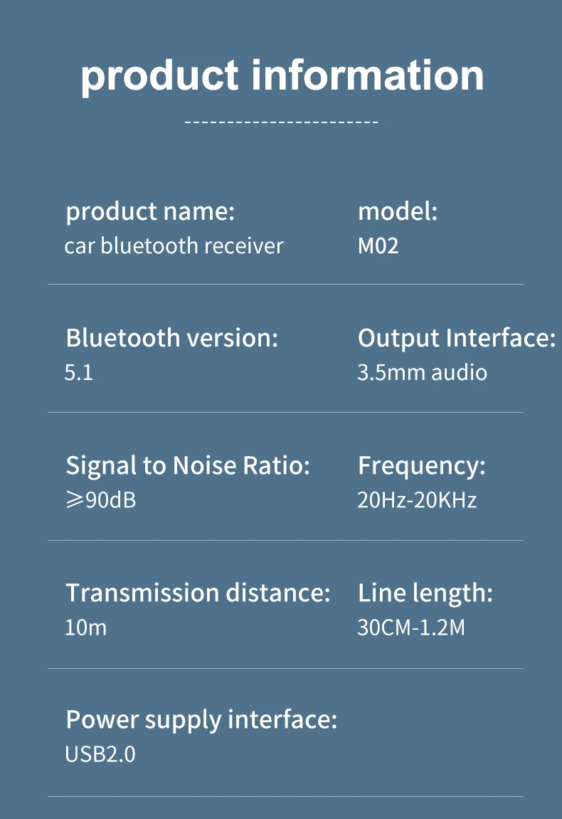 Nombre del producto: Adaptador de receptor de audio Bluetooth para coche