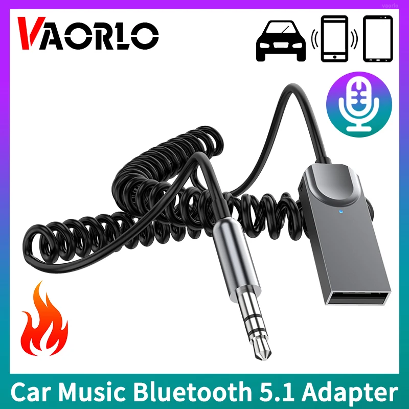 Comprar Receptor de Audio inalámbrico para música de coche, Cable de resorte USB Jack AUX de 3,5mm, adaptador Bluetooth 120 de 30-5,1 cm con micrófono HD, kit de manos libres