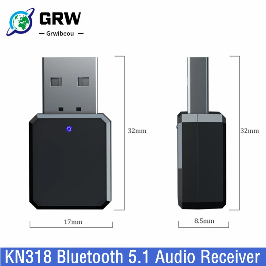 Comprar Receptor de Audio KN318 con Bluetooth 5,1, salida Dual, AUX, USB, estéreo, manos libres, adaptador inalámbrico para llamadas, receptor de vídeo, Adaptador de Audio