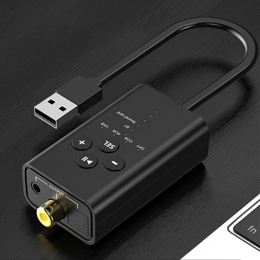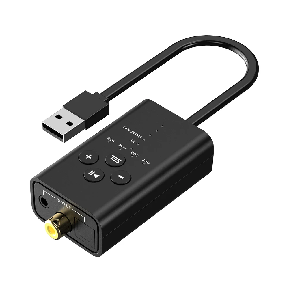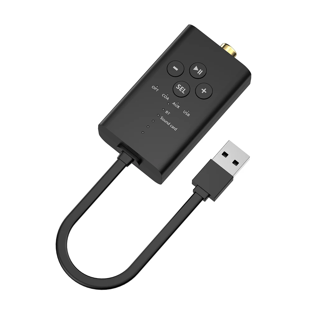 Adaptador receptor de audio5.2 Compatible con BluetoothAdaptador de audio inalámbrico AUX/fibra óptica/coaxial USB de 16 bits para audio/amplificador