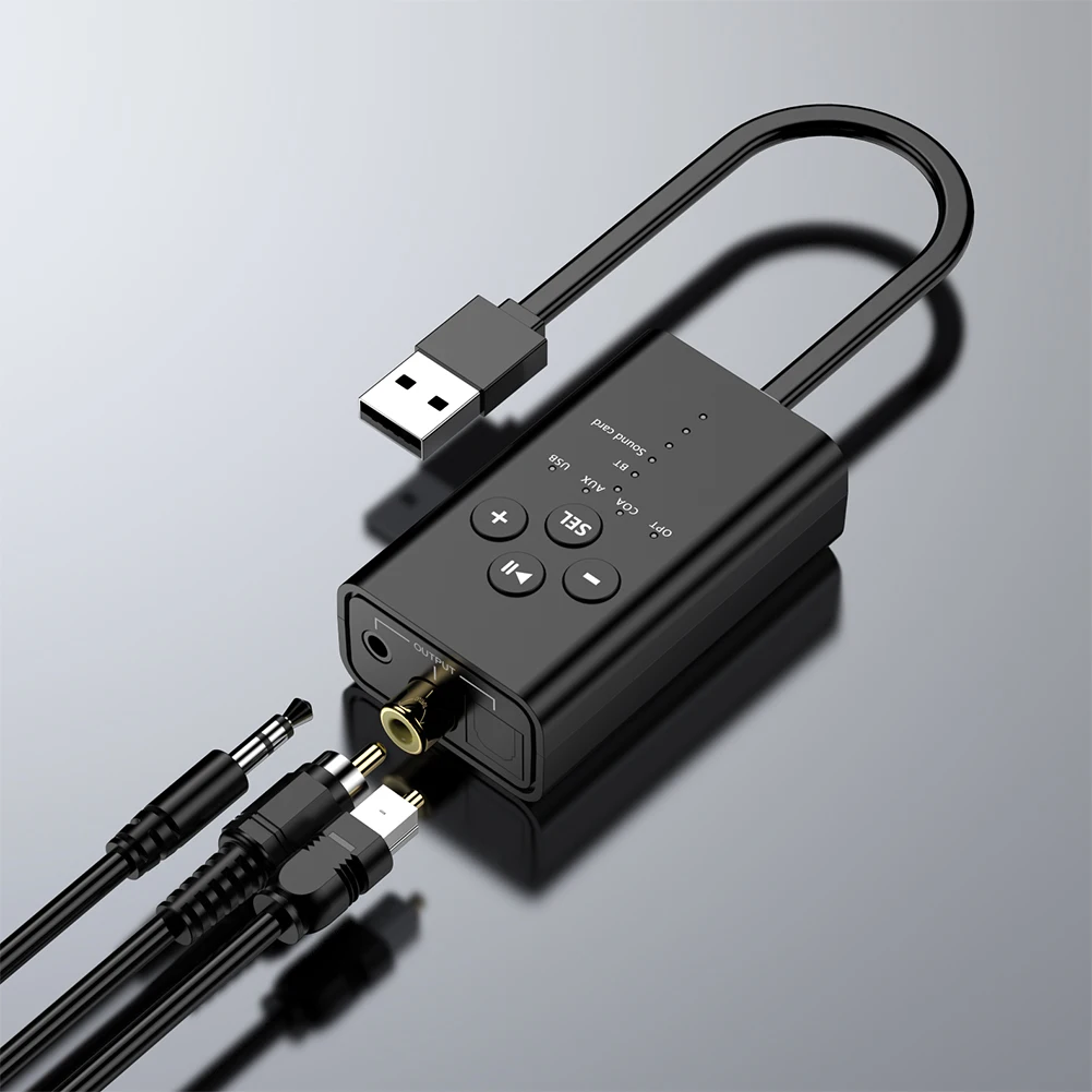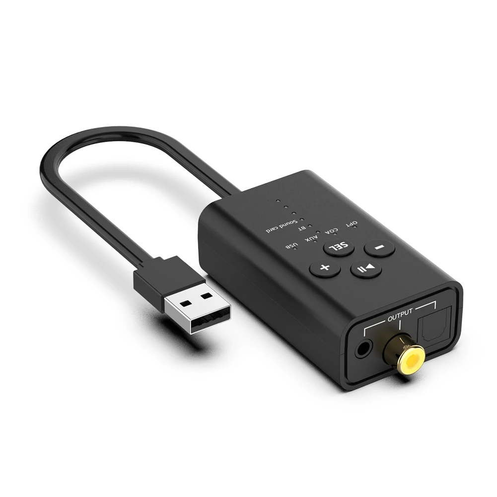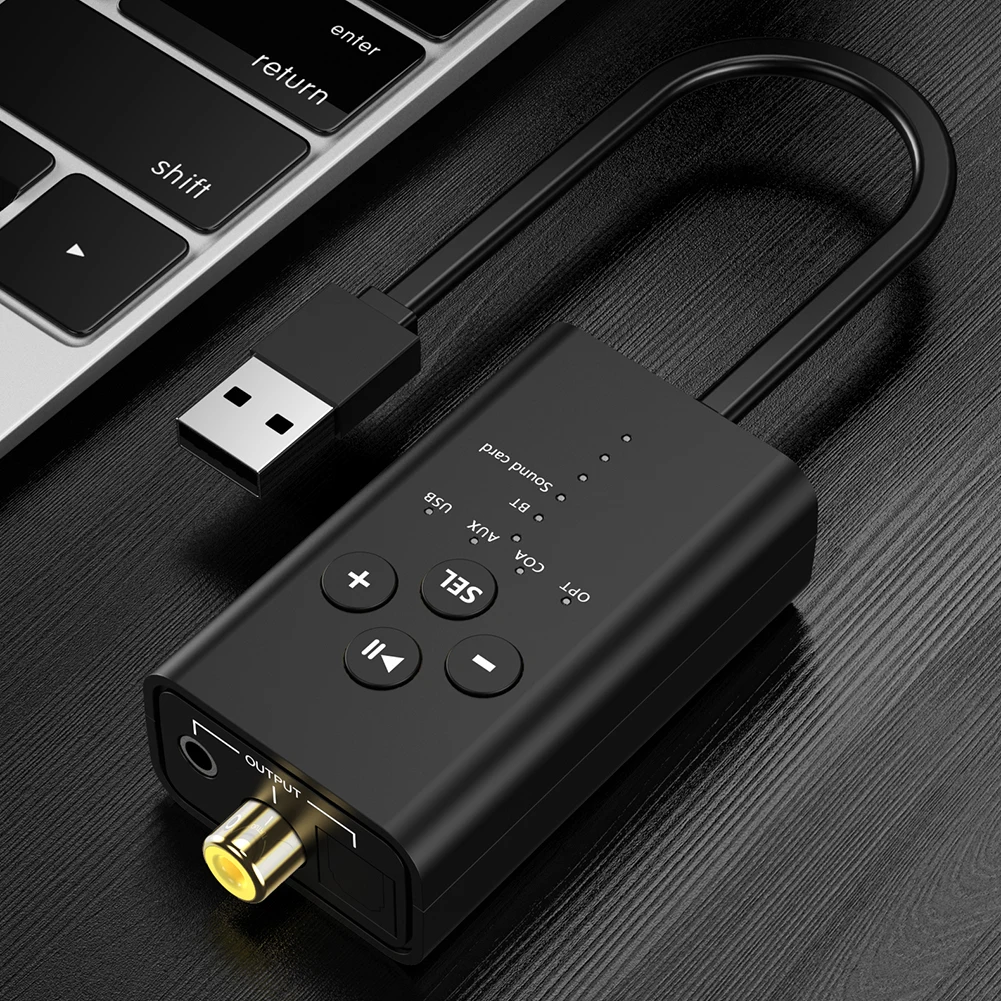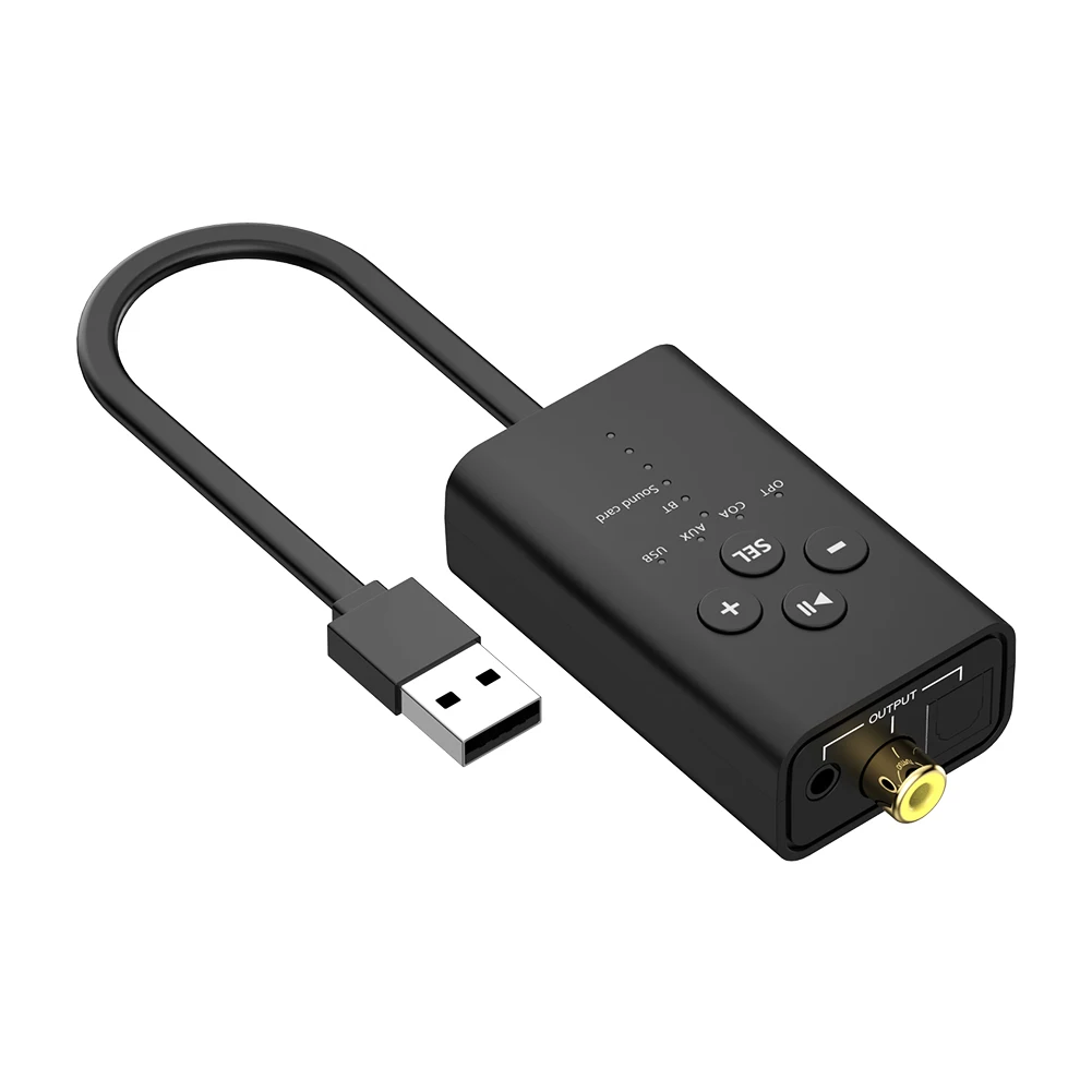 Adaptador receptor de audio5.2 Compatible con BluetoothAdaptador de audio inalámbrico AUX/fibra óptica/coaxial USB de 16 bits para audio/amplificador