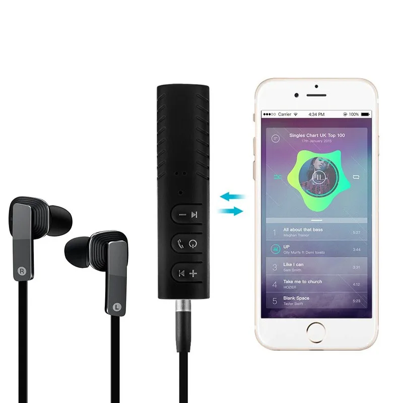 Comprar Receptor auxiliar Compatible con Bluetooth para coche, soporte de llamada manos libres para auriculares, altavoz, teléfono, tableta, adaptador auxiliar de Audio portátil para coche
