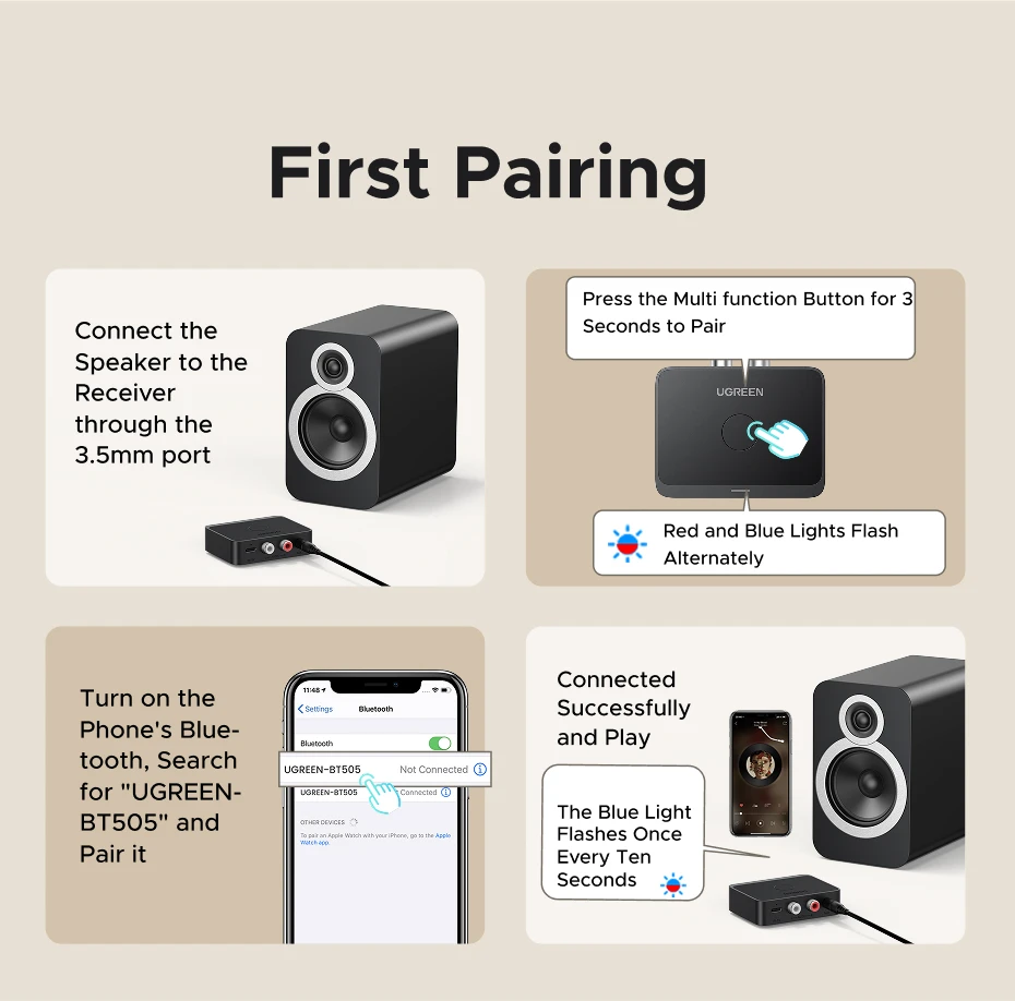 Un dispositivo pequeño y práctico que se puede llevar fácilmente conectando auriculares. Se enciende sin complicaciones y se conecta rápidamente a través de Bluetooth. Cuando LDAC está habilitado, el LED verde se ilumina. La calidad de sonido es muy buena, tanto con auriculares como mediante conexión RCA. En un apartamento de 60 metros cuadrados, la señal no se pierde al alejarse de la fuente. Definitivamente lo recomiendo.