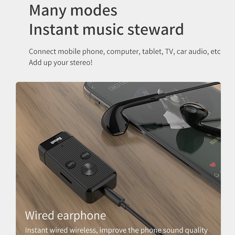 2. Nuevo Bluetooth receptor de audio, chip de procesamiento de alta precisión integrado, solo necesita conexión de interfaz de 3,5mm, puede llevar la función Bluetooth inalámbrica al audio,