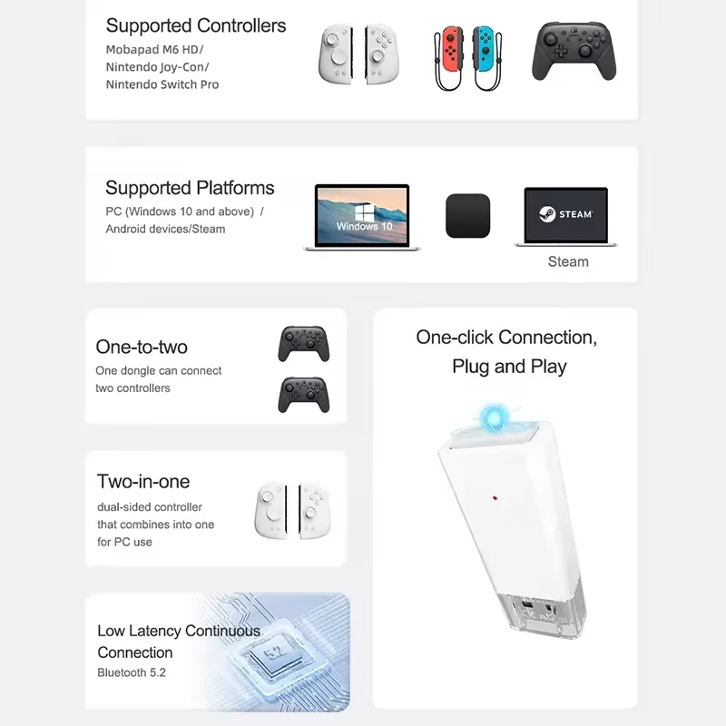 Para Black Myth: Wu Kong Mobapads BT Receiver 2 en 1 Controller Converter para Steam/PC/Android/NS Adapter Accessories