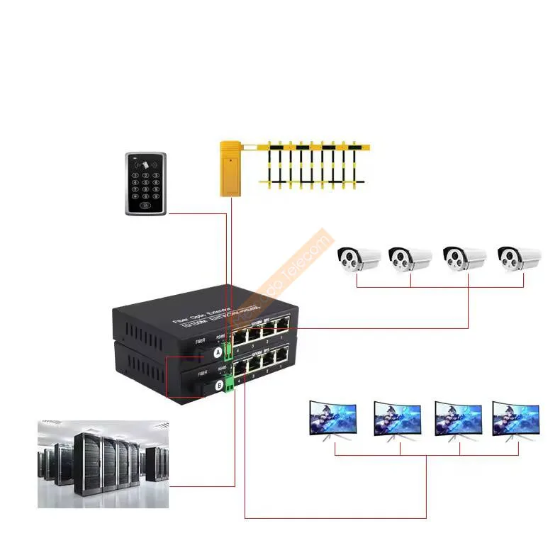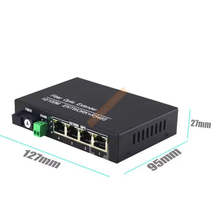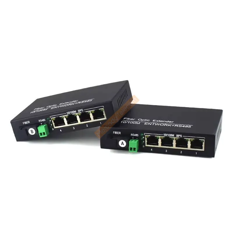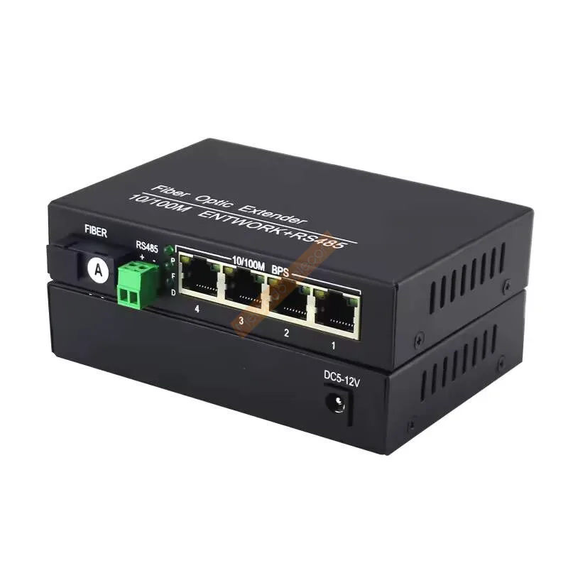 Receptor de fibra óptica Ethernet RS485 de 4 puertos 10/100 Ethernet + 1 vía Convertidor de datos de fibra SC monomodo 20 km