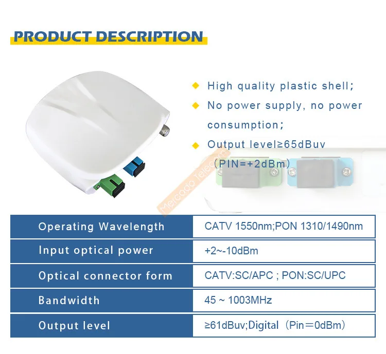 Alta calidad 10 unids/lote SC APC nodo óptico FTTH receptor CATV fibra óptica WDM convertidor Triplexer Mini modo