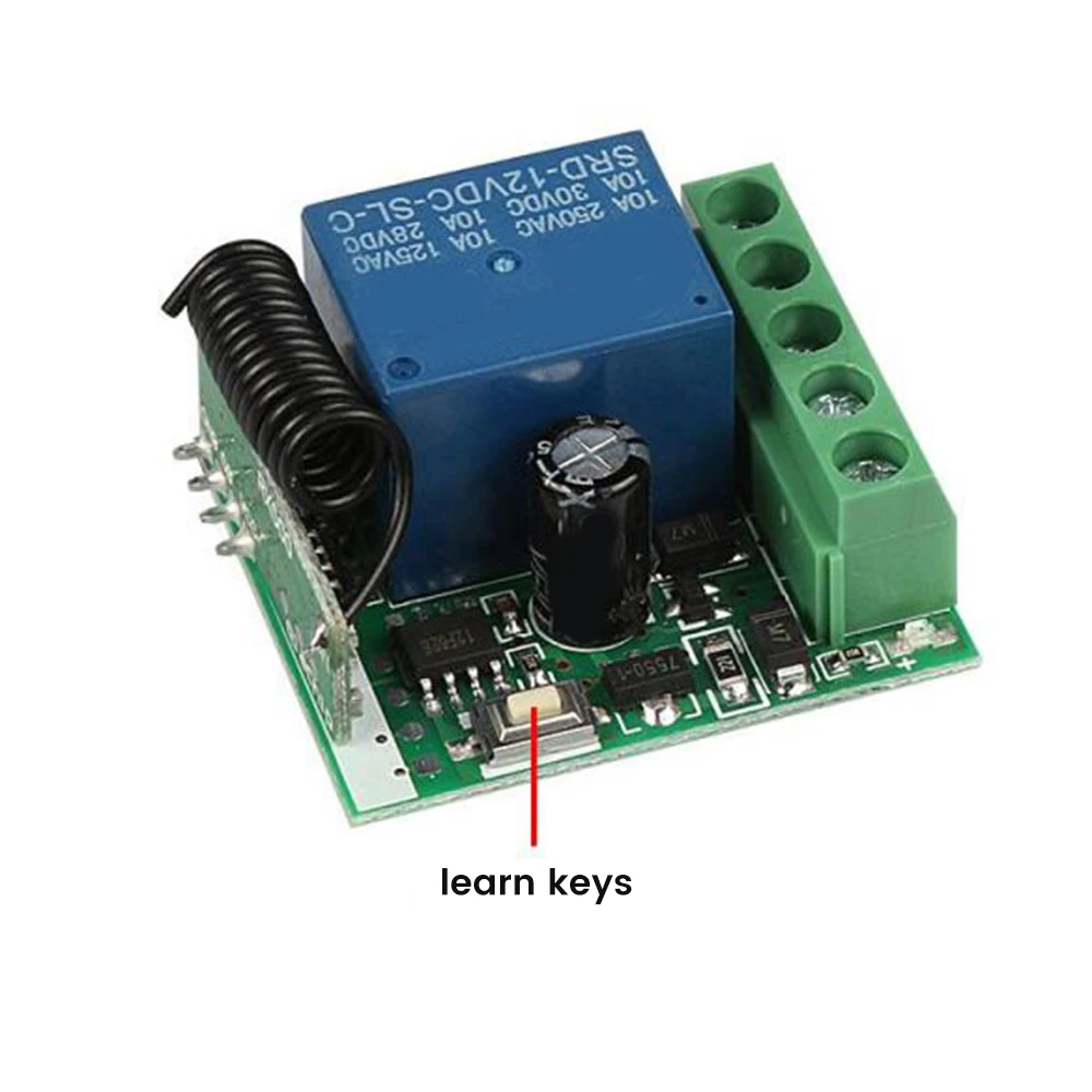 Comprar Receptor de interruptor inalámbrico RF de 433 Mhz, módulo receptor de relé único de CC de 12V, con Control remoto inalámbrico Universal de 2 piezas
