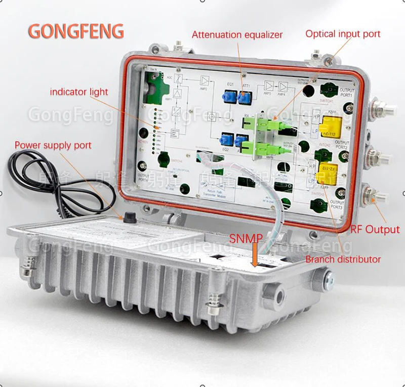 Comprar Receptor óptico AGC CATV de 4 vías FTTH HFC, nivel de salida RF 110dBuV IP66 impermeable para exteriores OR719 con carcasa de aleación de ruta de retorno