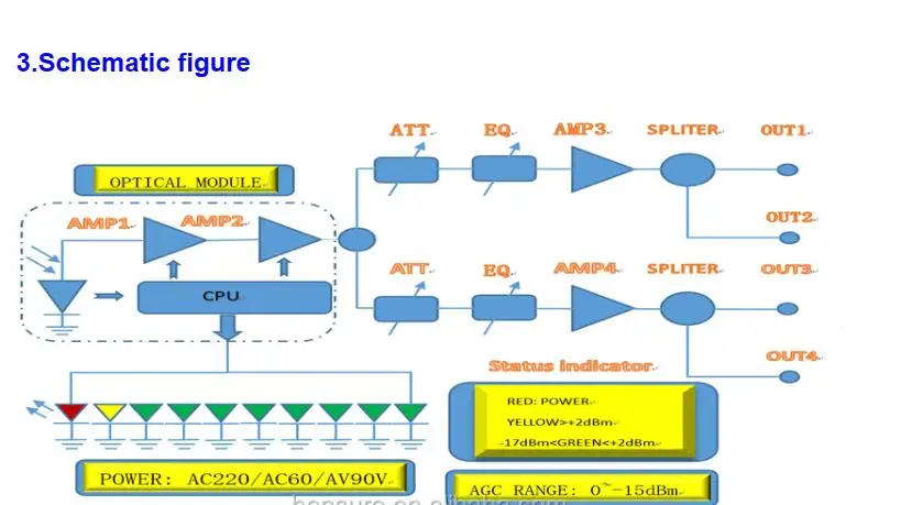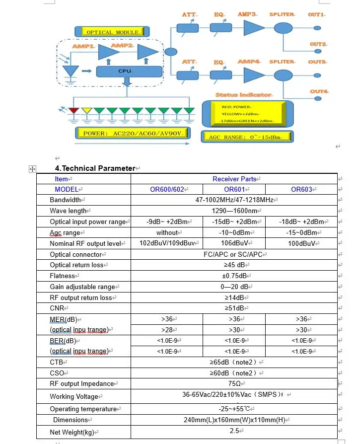 ORNU1004:-15 ~ 0dBm control óptico AGC,El nivel de salida se mantiene sin cambios.100dbuV