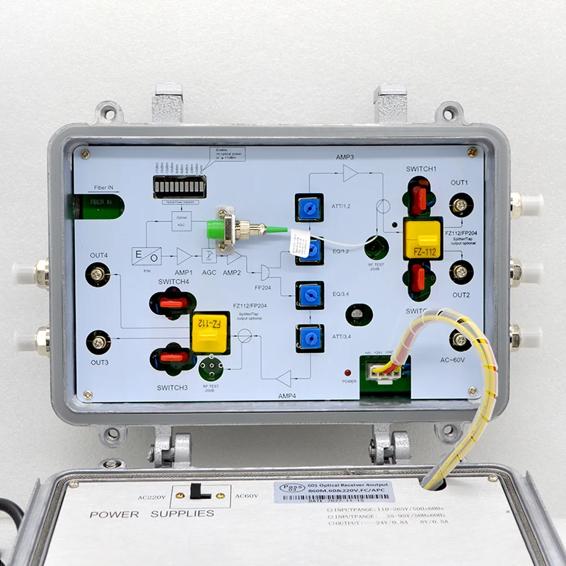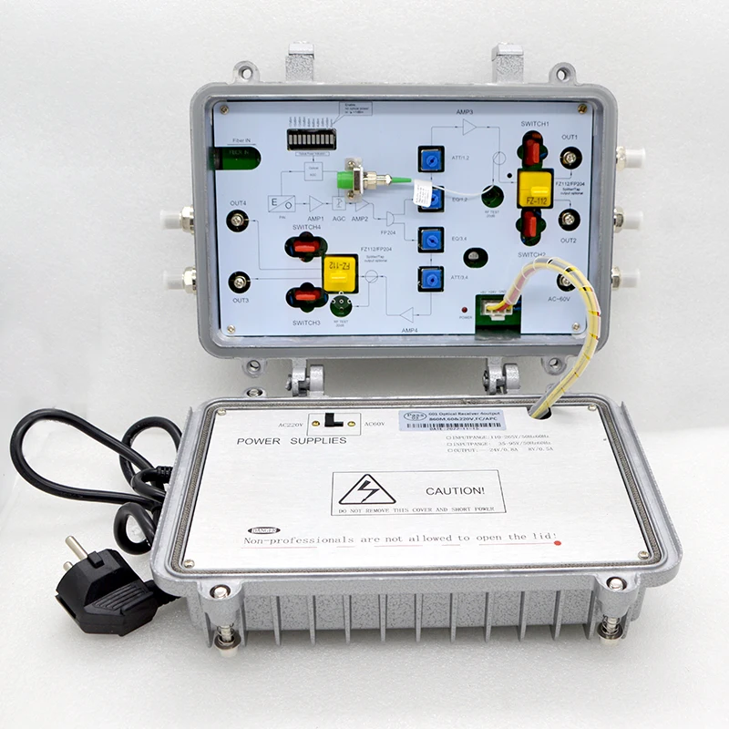 Comprar Receptor óptico CATV para exteriores, convertidor AGC SC/APC FC/APC, 4 salidas, AC220V /60V -18 ~ + 2dBm 100 ~ 115dBuv 1310/1550nm