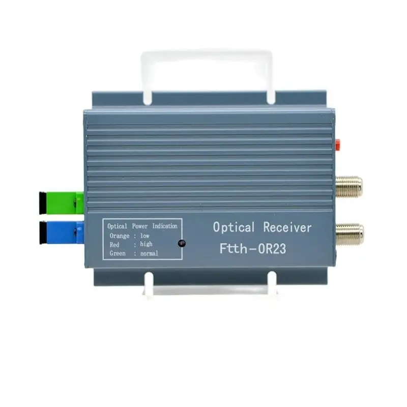 Descripción del producto: El producto OR23W es un receptor óptico multiusos con bajo calor, alta fiabilidad y alto índice desarrollado por nuestra empresa para adaptarse a la diversificación de la fibra óptica de los hogares. Receptor óptico de construcción, receptor óptico interior, integra la función del divisor, Puede separar la señal de red de banda ancha transmitida por la señal concéntrica al gato óptico, no afecta la transmisión de TV por cable, es muy bueno Un receptor óptico de tipo doméstico con demultiplexación