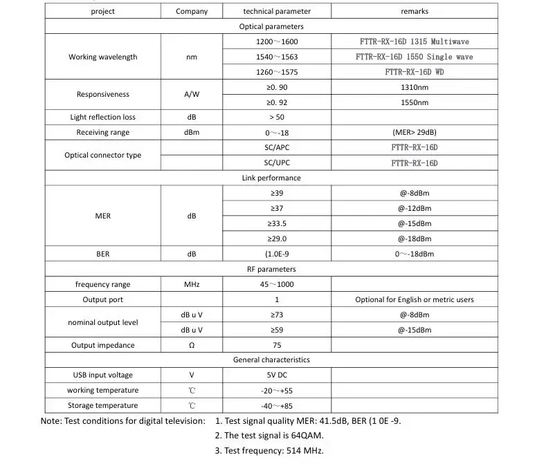 FTTR-RX-16D es un receptor óptico doméstico lanzado por nuestra empresa con recepción de baja potencia óptica alimentada por USB,