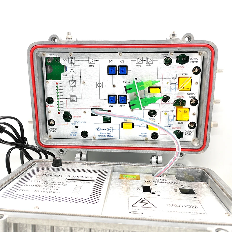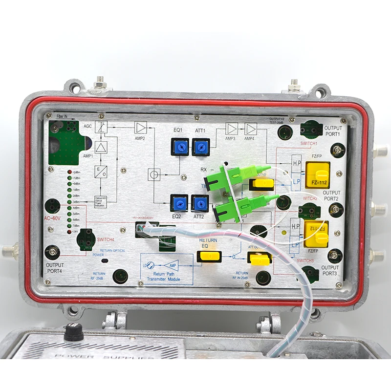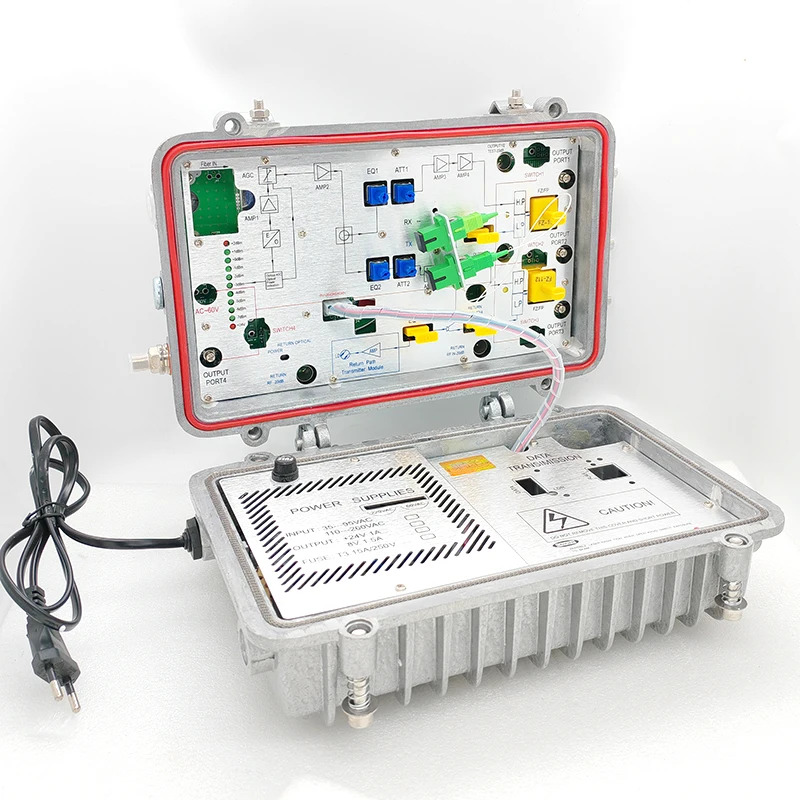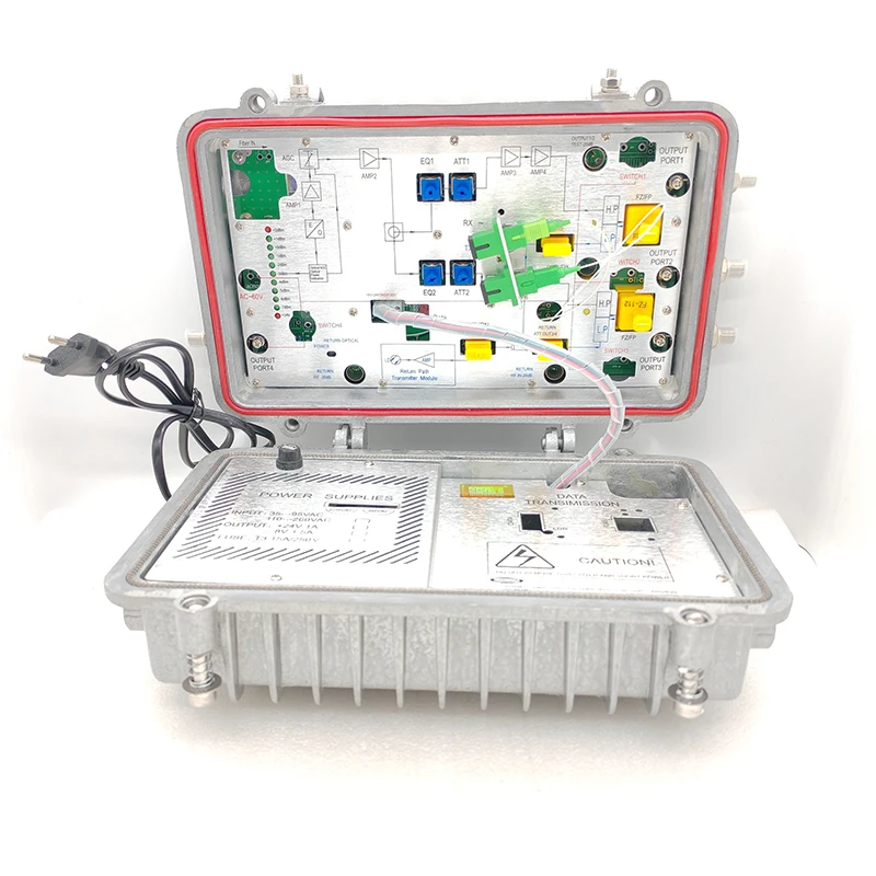 Receptor óptico AGC FTTH CATV impermeable para exteriores con ruta de retorno 65/87 Nodo HFC Nivel de salida RF de 4 vías 110dBuV Venta al por mayor de fábrica