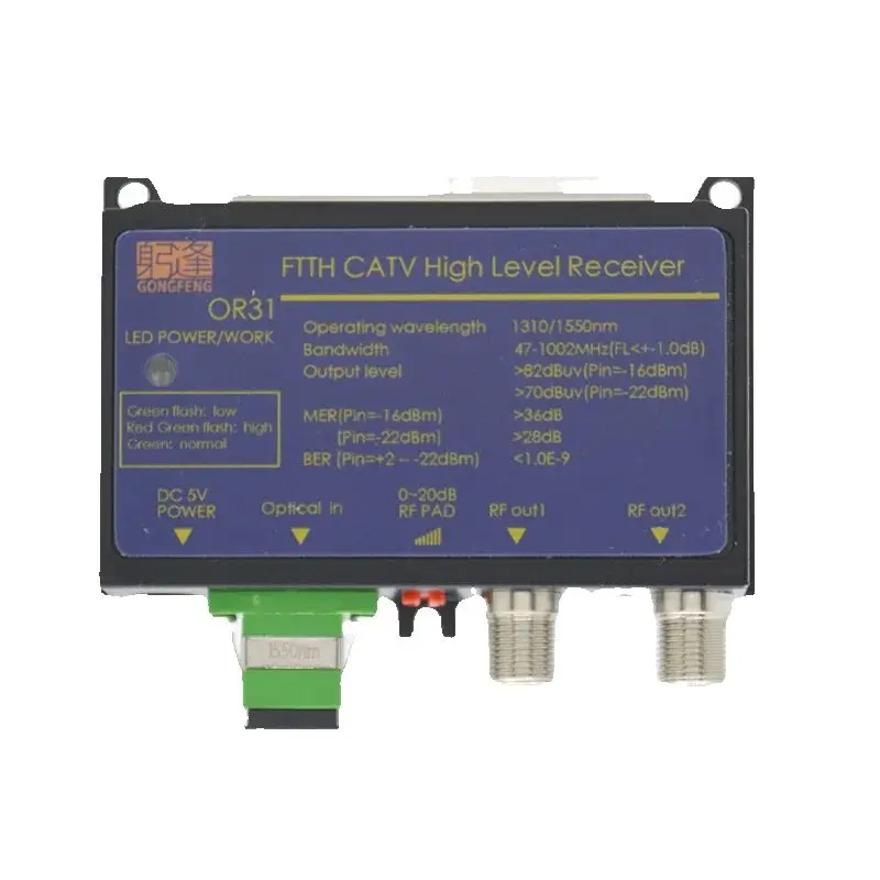 Receiver output level: >82 dbuv (Pin=-16dBm) (FTTH OR31)