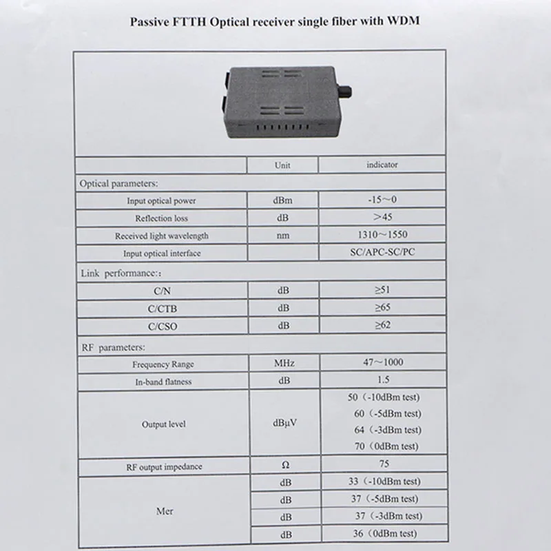 Comprar Receptor óptico pasivo FTTH CATV, convertidor de fibra única de nodo MiNi con nivel de salida WDM 46 dBuV, precio de fábrica al por mayor, 10 Uds.