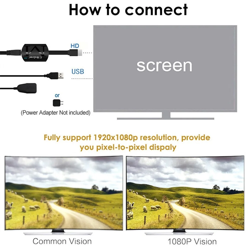 Comprar Receptor de pantalla WiFi inalámbrico, dispositivo para TV stick Mira, DLNA Airplay HD Media Miracast TV Dongle 1080P para teléfono, tableta, PC a HDTV