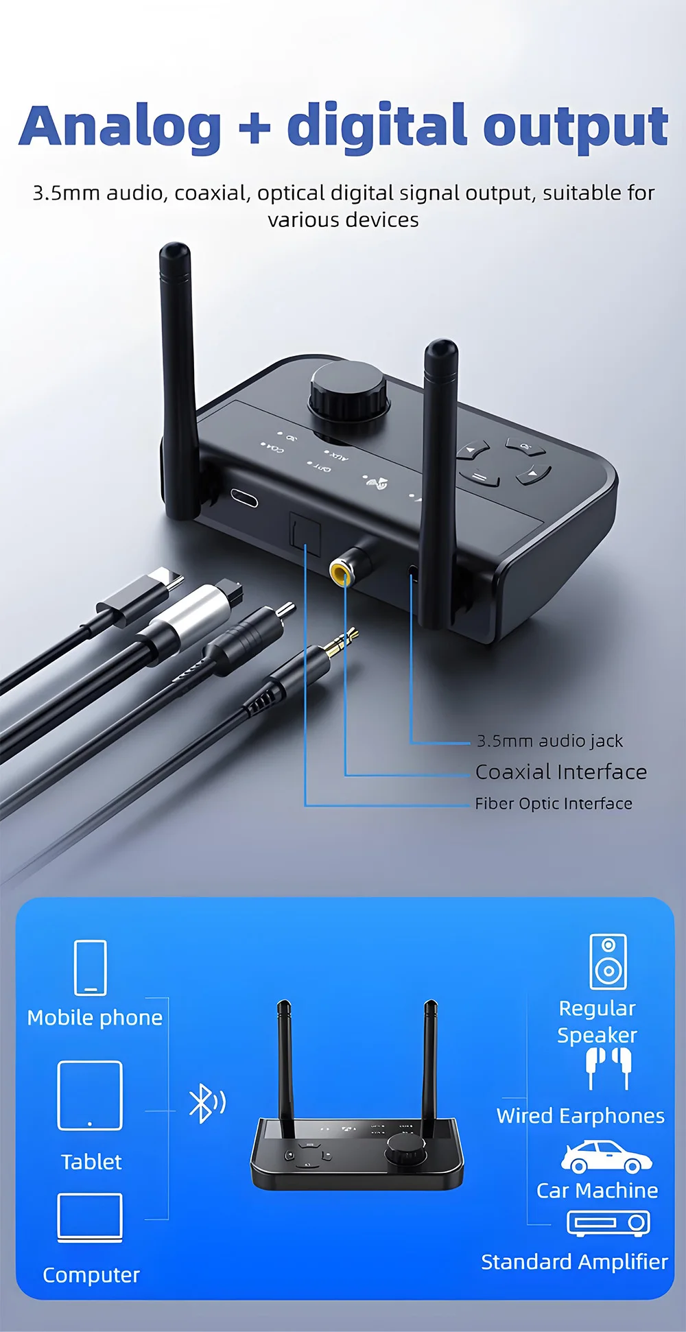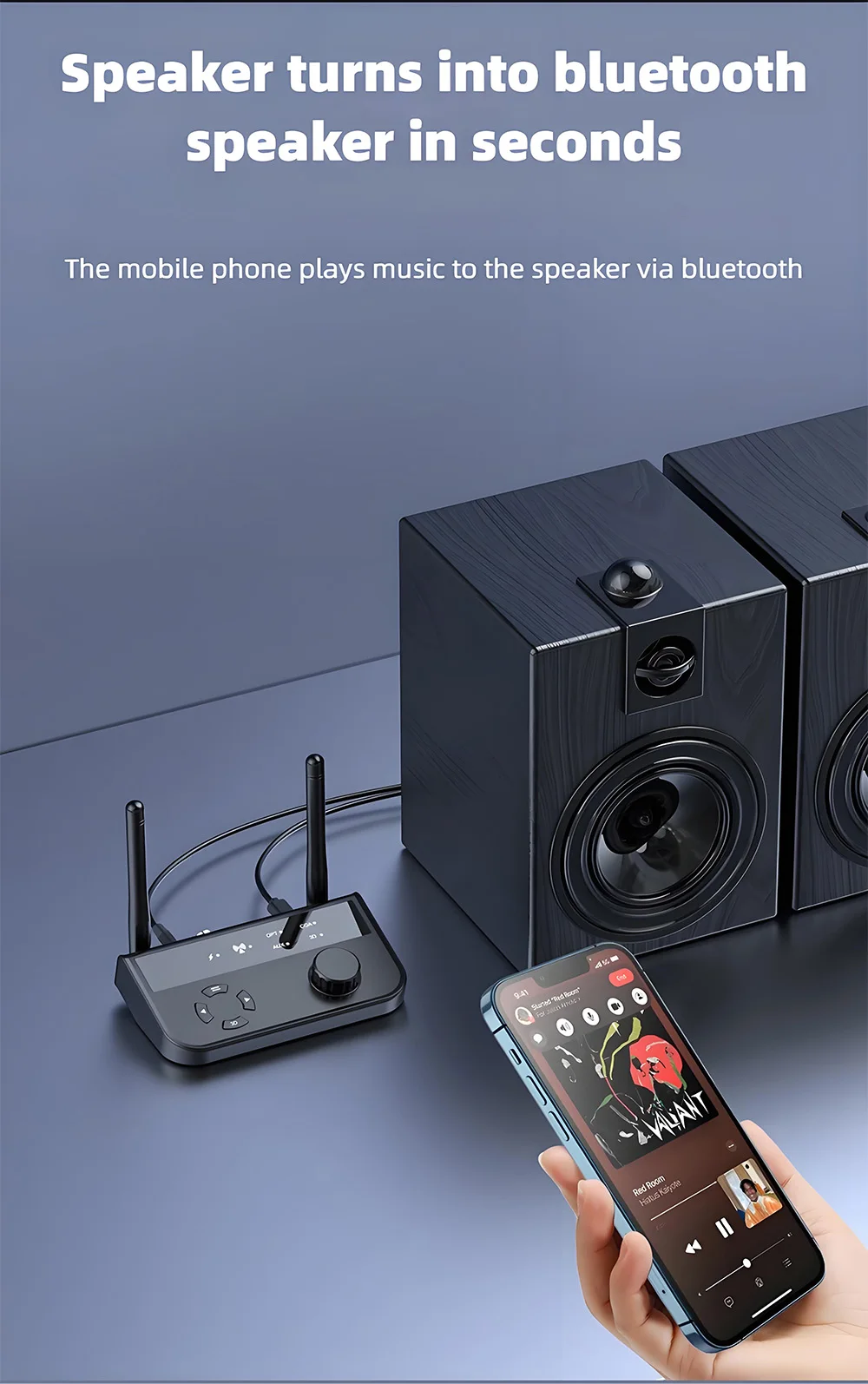Transformar dispositivos de audio ordinarios: Convierte instantáneamente los altavoces normales en altavoces Bluetooth, resolviendo la limitación de los equipos de audio sin Bluetooth y ampliando su funcionalidad.