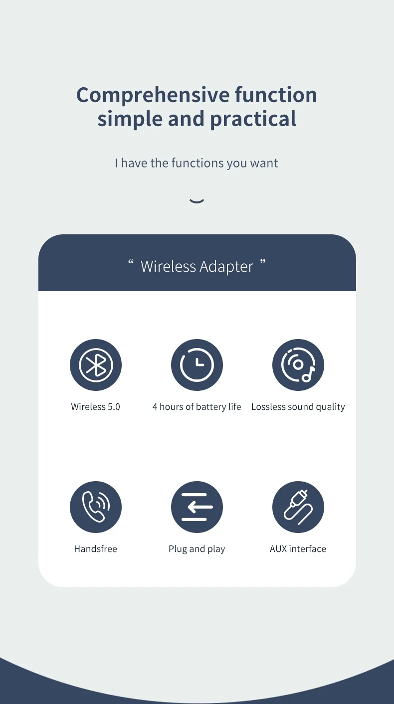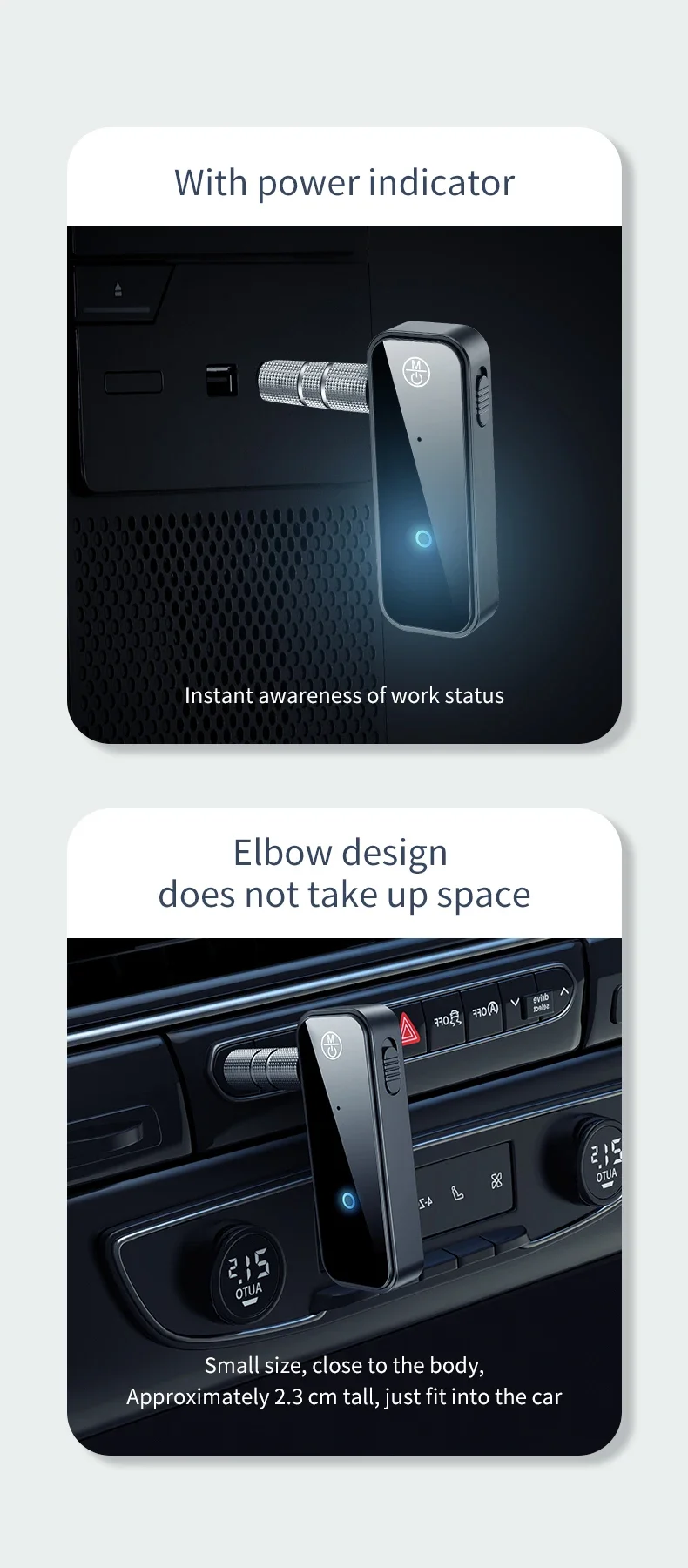Conecte el conector bluetooth a la interfaz AUX del automóvil a través del adaptador/cable de transferencia (estándar) y conecte el bluetooth al estéreo del automóvil, que no solo puede hacer llamadas, sino también escuchar música dinámica, para que su viaje ya no sea solo