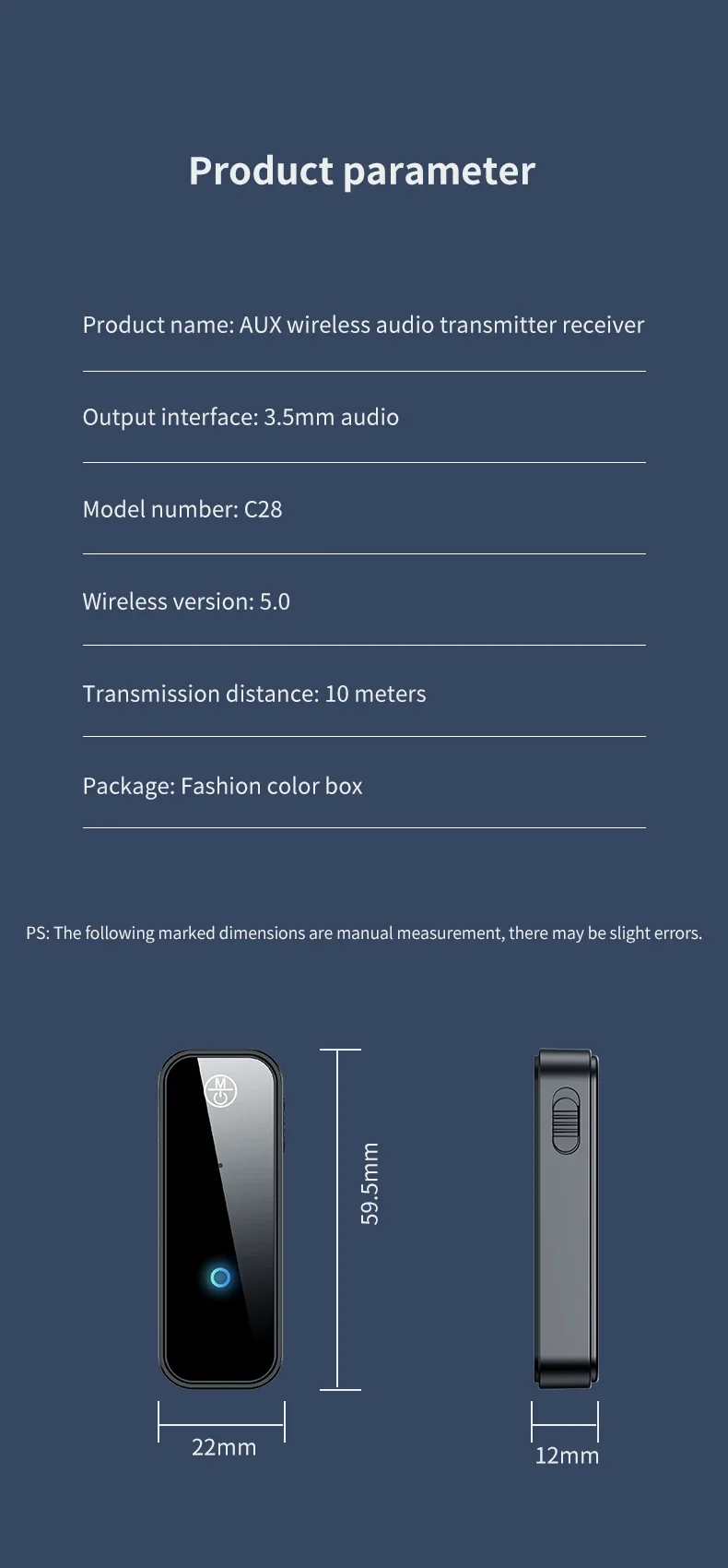 Modelo de producto: combinación de recepción y transmisión de audio Bluetooth C28