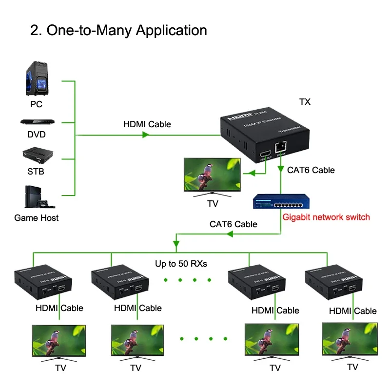 Comprar Receptor transmisor extensor HDMI IP de 150M por Cable Ethernet RJ45 CAT6 1TX a divisor RX múltiple para PS3 PS4 ordenador PC a TV